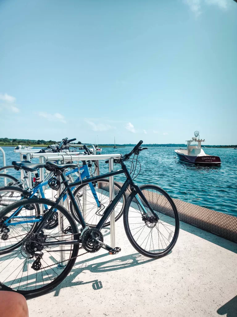 Biking is one of the main modes of transportation on Martha's Vineyard. Even if you bring your own car, you will want to throw your bikes or your rent some while on the island to explore parts of the island. Trust me when I say some are better done on bike then by car. Martha's Vineyard is so bike friendly, I can't think of a single street that doesn't accommodate for cyclists. You'll feel very safe cycling around. Of course, the island isn't small either. So aside from public buses being built with bike racks in the front and back for people to travel around the island easier, there are also miniature bike ferries that can take you from one side of the island to the other. One of these is located in Menemsha. The bike ferry takes you between Menemsha and Gay Head for just $4 one way or $7 round trip. The journey is about 3 minutes, but is the only way to get to Aquinnah Cliffs and Gay Head by bike, unless you want to do a super long bike ride along busy State Road...but trust me, you don't.