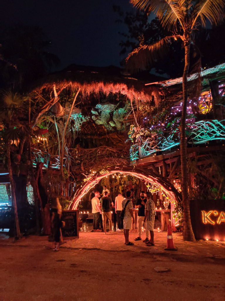 Any night of the week, when you walk down Tulum Beach road you will come across multiple party opportunities. Open aired attractions or dinner places with loud music and dancing, both on tables and not. You can take your pick when it comes to the ambiance. You can either opt for a beach party or loud jungle experience, or go for more of a private speakeasy party like the one Pat and I did at Tulum Treehouse.