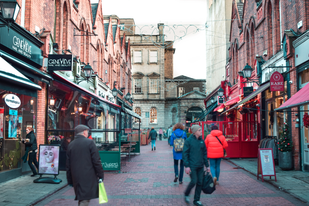 Grafton Street is the heart of The Creative Quarter so you must start here. The main shopping road is lined with two to four story townhouses left and right, with just about twelve meters of walking space between each side. The road is narrow and winding making it feel like an intimate shopping experience. During Christmas, the streets were lined with Christmas lights and colorful decorations hanging from one side of the street to the other. The street was originally built for residential housing and was named after a Lord and Lieutenant of Ireland. It eventually became home to a number of publishers and the Whytes Academy high school, where Thomas Moore, Robert Emmet, and the Duke of Wellington attended. Make sure to keep your head up while walking and admire the upper façades of the building showcasing Art Deco and Jacobean architecture from the 19th century. The street is open only to pedestrians so don't be afraid to walk in the middle of the road, just be careful not to trip over street performers on your way down.