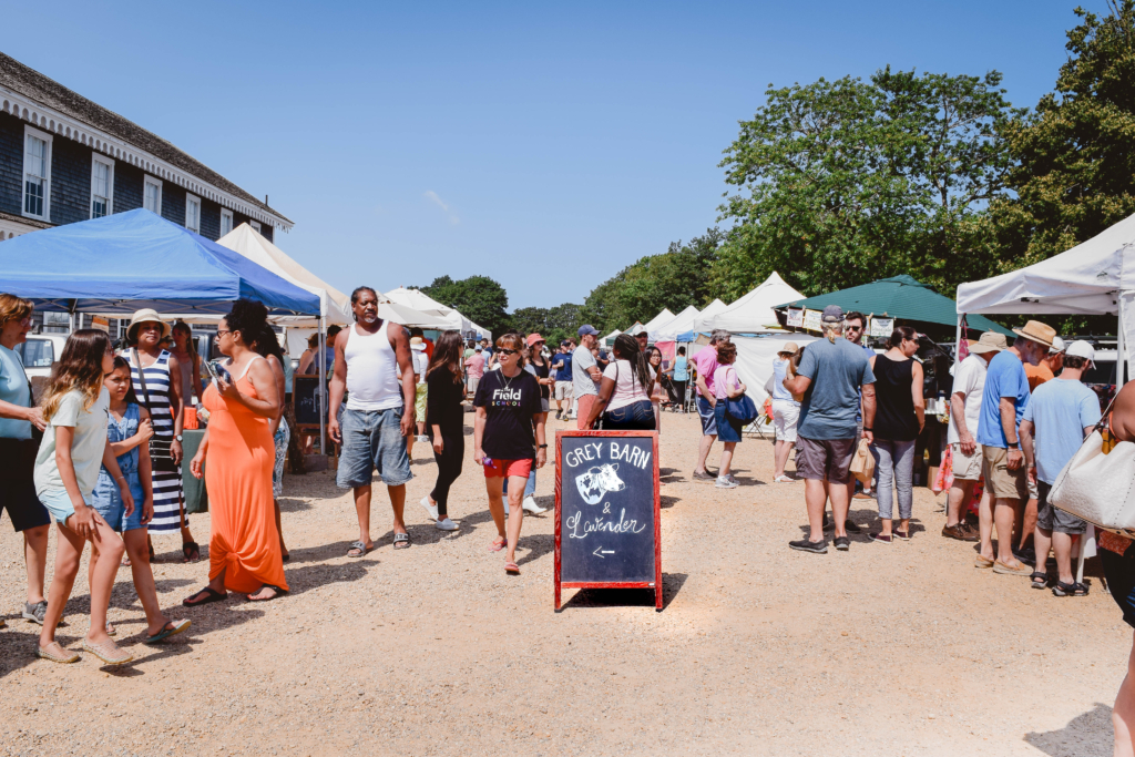 The market was started in 1974 by a small group of local island growers making 2019 its 45 year anniversary. Over time, the market expanded from a small dozen farmers to more than 45+ local farmers producing local food, fruits, vegetables, meat, poultry, cheese, baked goods, and even household and apparel products. The event is held Wednesdays and Saturdays in July and August at the iconic Grange Hall. Grange Hall was originally built in 1859 by the Martha's Vineyard Agricultural Society and was the location of the Agricultural Fair held every August until 1994.