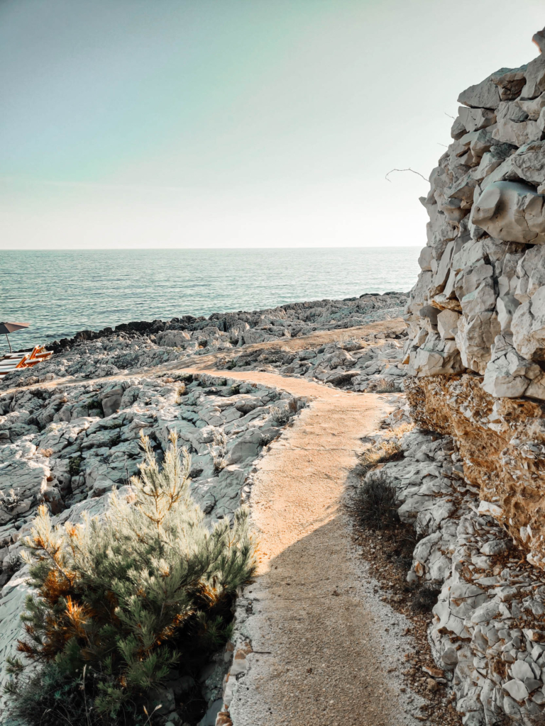 Just behind Strand Mekićevica, just a 3 minute walk around the cove, you finally reach Robinson beach. Robinson beach has a few more people than Strand Mekićevica because of its amenities and size, but still a select hand few since getting their involves a hike or water taxi. The water at Robinson beach is equally as turquoise and pristine. The only difference is that it's made up of two tiny beaches separated by big boulders and has a quaint restaurant called Restaurant Robinson. The restaurant is known for their lunches, which offer a variety of specialties in Dalmatian cuisine. It's nestled and shaded underneath olive groves, making for a very intimate and remote experience. Restaurant Robinson is particularly known for their squid nona mikra, or squid braised with onions. Eat seaside at their restaurant while watching the waves roll into Robinson beach, it's a culinary experience you won't want to miss.
