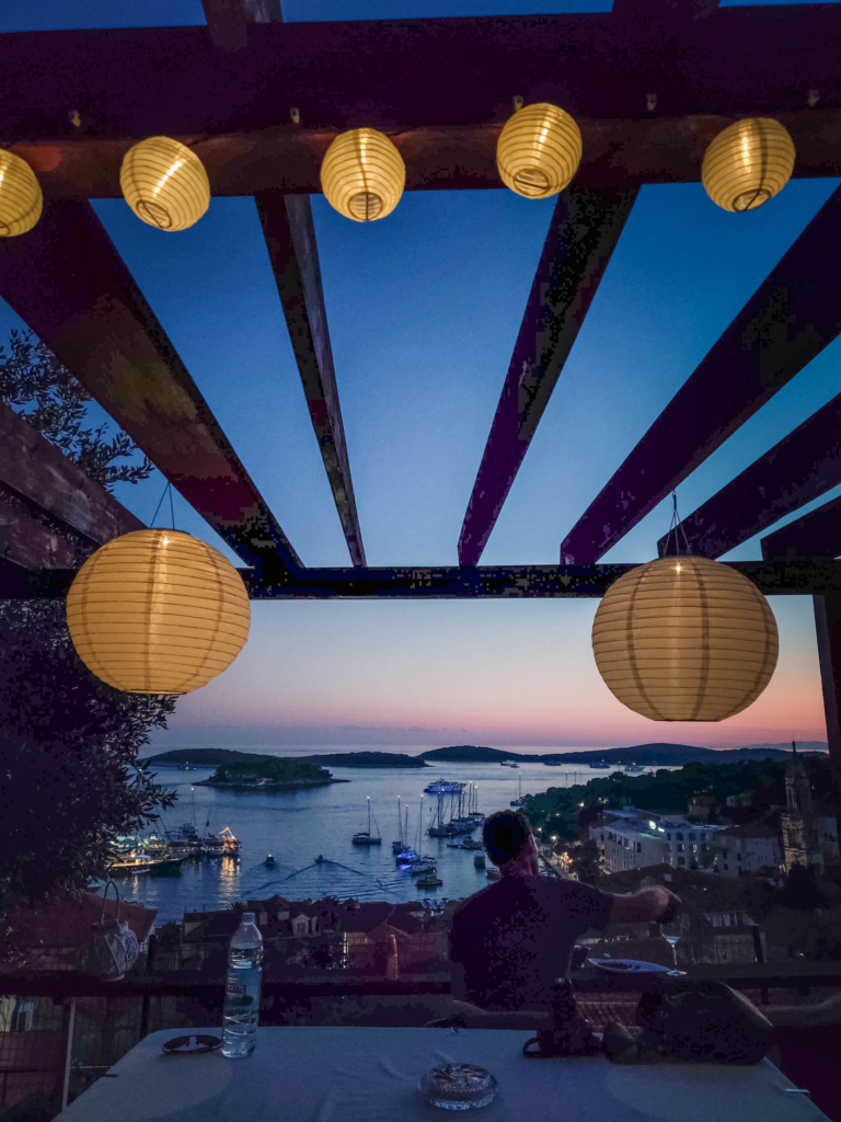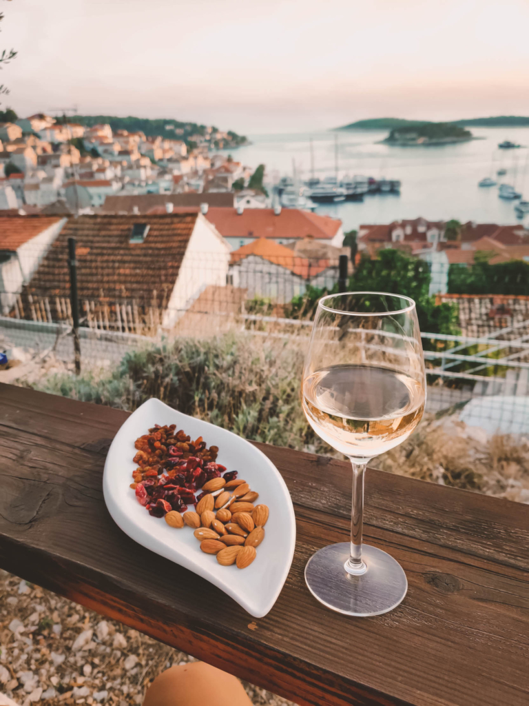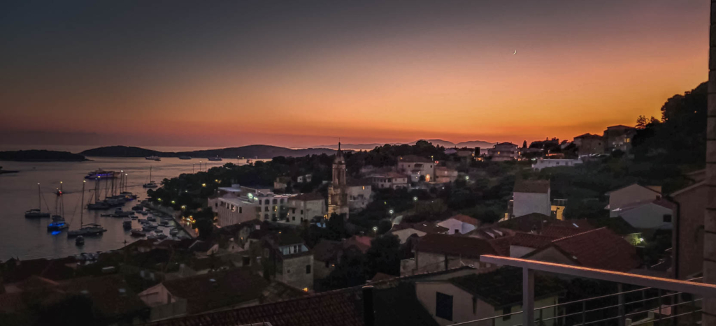 As the sun was beginning to set, we started our descent back into Hvar Town. We made it just in time to run to the super market, grab a bottle of Plavac wine and a bag of chips, and run up to our Airbnb to watch the sunset behind Hvar Town harbor. We watched as the sky turned from a mellow yellow and blue, to a fiery orange and red, to a subdued purple and pink.