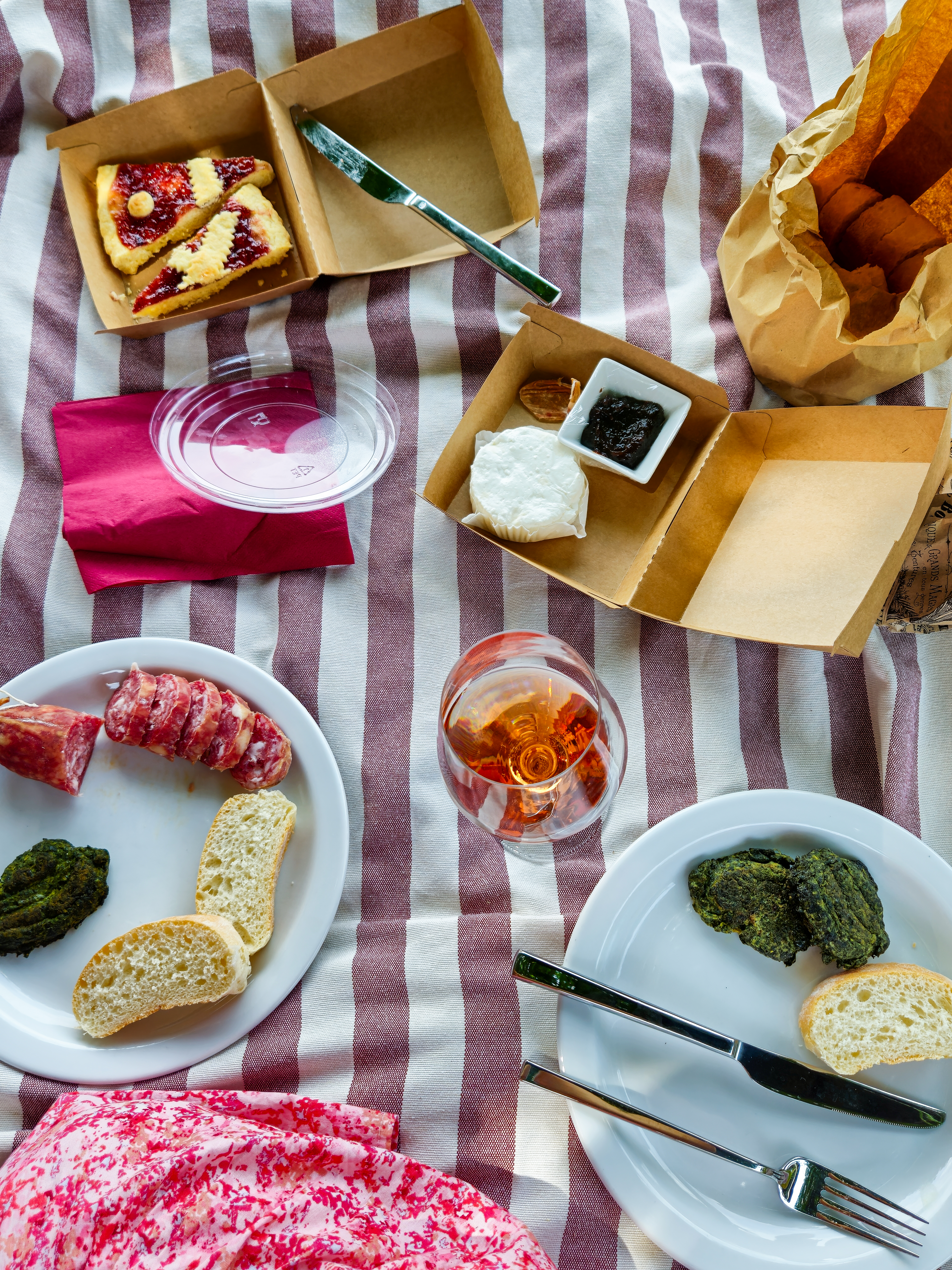 We had reserved a picnic lunch from a local winery, Agricola Coppo Giovanni, a family-run spot offering picnic baskets filled with food that feels like it came from the pages of an Italian novella. Everything was homemade by local businesses, including Nonna Chicca, who we later met (86 years old and radiating warmth). We drove up to a quiet ridge overlooking the village, laid our blanket beneath a chestnut tree beside a chiesetta, or tiny chapel, and unpacked: carpaccio, freshly baked bread, local salami, spinach frittata, sheep’s milk robiola (a favorite of mine), and Nonna Chicca's homemade crostata.