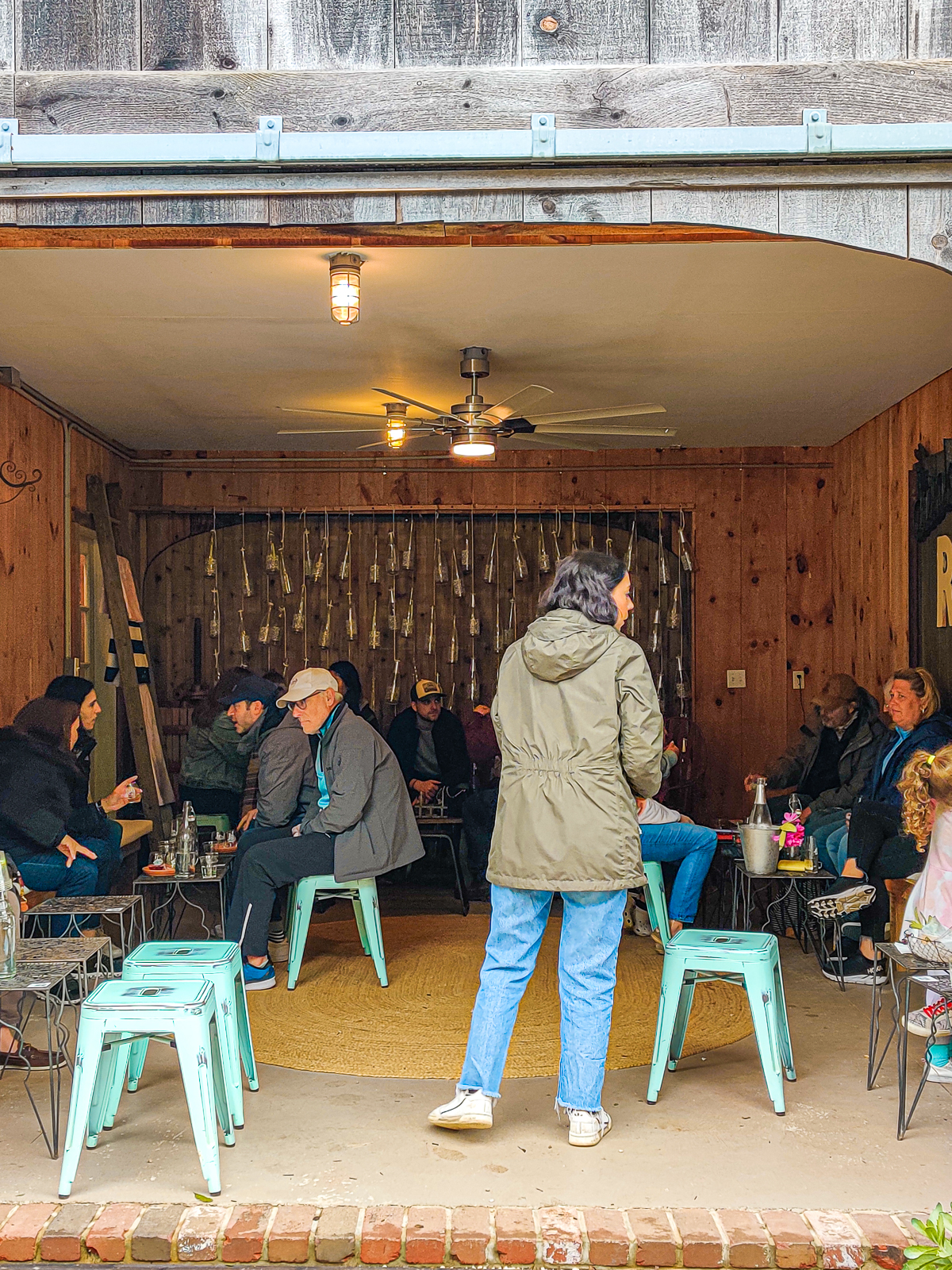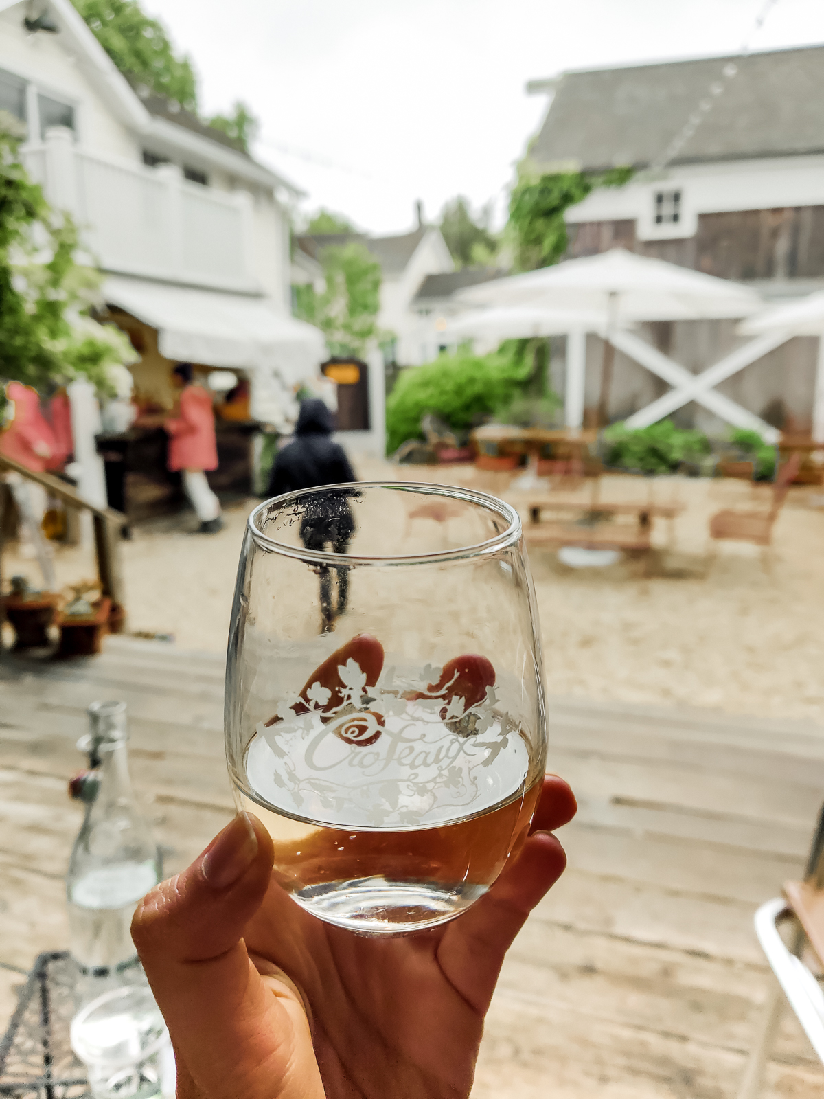 Sitting within a 200-year old barn sipping our millennial pink Rosé wines, I realize how unique Croteaux Vineyard proposition truly is. It's a mix of everything. It's wine, it's location, it's décor, and story. It was a rainy day on the North Fork, but that didn't stop us from being outdoors. Croteaux Vineyard in Southold has a 200-year old barn that keeps people from getting wet while still enjoying the outdoors and two historic buildings now turned into tasting rooms. Blankets are given out to guests who are feeling cold. A pile of logs are stores in the front. It truly feels like an intimate experience.
