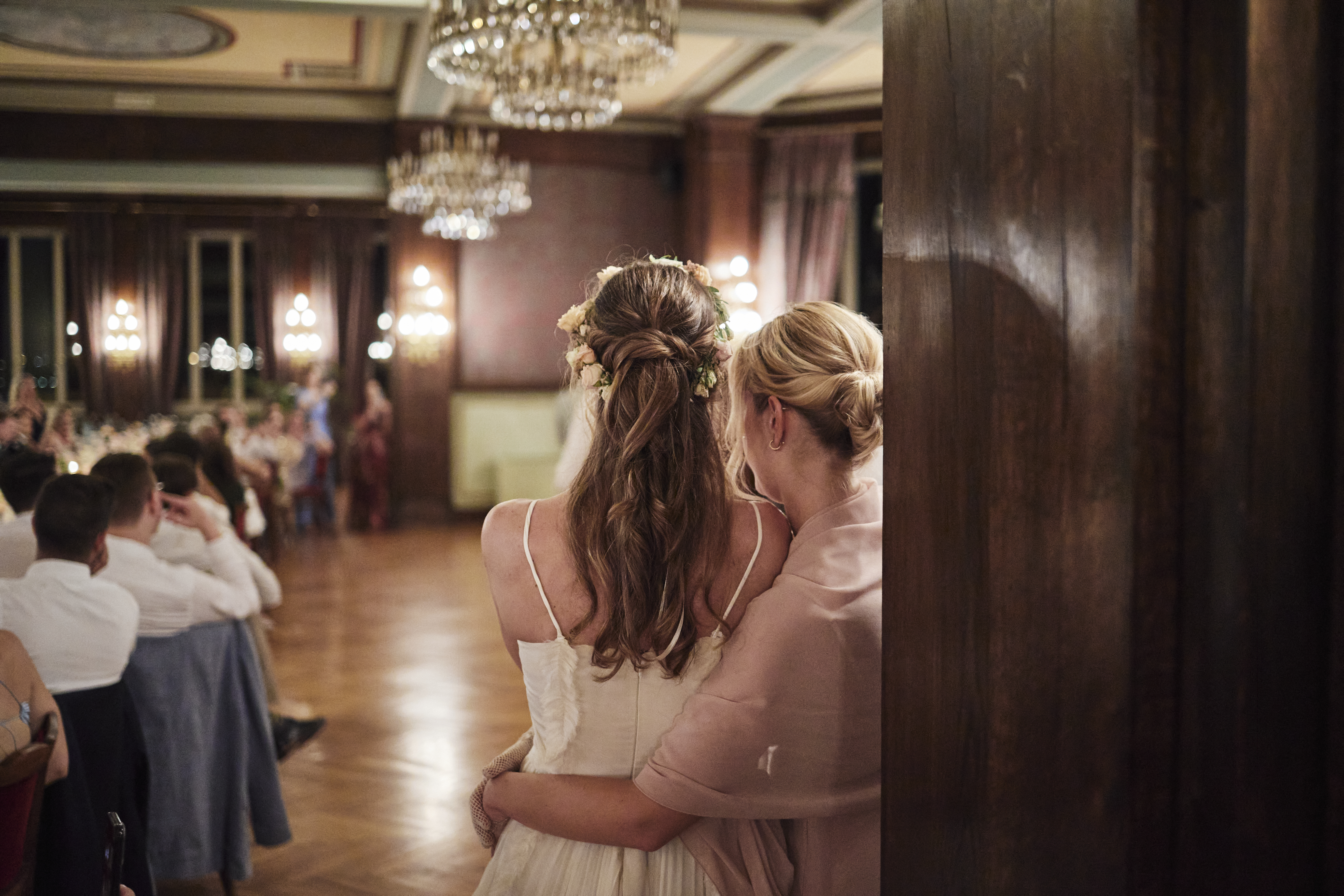 We got off the steamship ferry and led guests inside for dinner. While our guests were getting settled inside, we took some time for some special shots amongst Grand Hotel Majestic's gardens and plants with the awe-inspiring background of the lake and it's mountains. A friend of my mom's is a photographer and as a wedding present gifted us a black-and-white old school photoshoot that she would try and do every year for us so we could have an album of photos of every year together. We have yet to see those photos, but I can't wait!