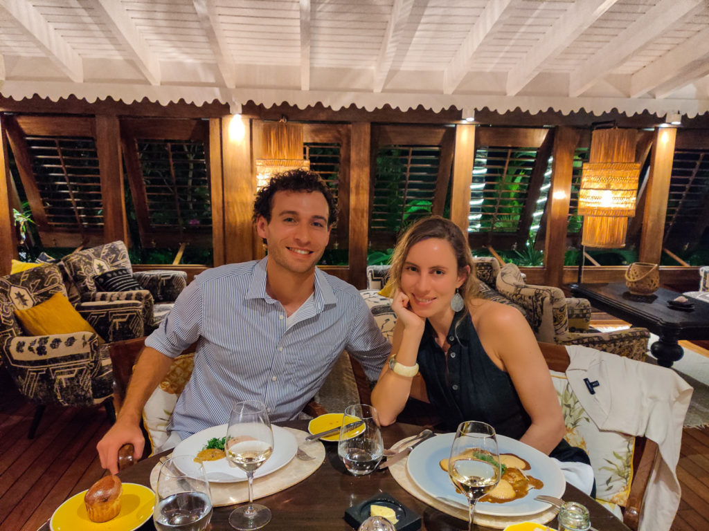 The Sibuet family made their official grand appearance in St. Barth in 2016. Gyp Sea Hotel St. Barth used to be a hotel and restaurant called François Plantation. Françoise and François were a couple that ran the property and made it a very well-known and highly regarded staple on the island. It had its glorious years, but overtime leadership changed and the restaurant wasn’t maintained. It eventually closed down. When the Sibuet’s took over in 2016, they chose to keep the name of the restaurant and breathe life back into it. Locals and long time visitors of the island couldn’t be happier to see François Plantation come back to life. Pat and I decided to try this talked about iconic location with drinks at the pineapple lounge accompanied by dinner prepared by Chef Emmanuel Motte.