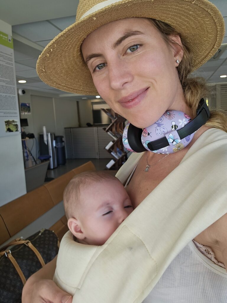 I brought a pair of baby headphones for noise protection, and let me tell you—I’m so glad I did. Those propeller planes get loud, especially the private ones. Honestly, I probably should’ve packed a pair for myself! I can also confirm they work like a charm. I tested this firsthand on the flight from St. Maarten to JFK when I made the mistake of not putting them on Sibby at first. Every time the flight attendant made an announcement, she’d jolt awake and freak out. The moment I put them on? Out like a light for the rest of the flight.