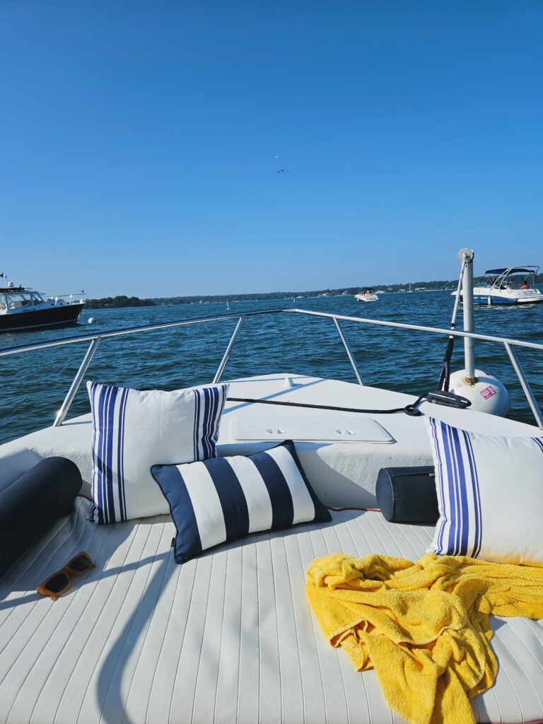 You can anchor your boat next to Great Captain Island, but you cannot dock it. The dock is reserved exclusively for the public ferry. You can swim or float to the shoreline from your boat if you'd like, but most of the time people stay on their vessels.
