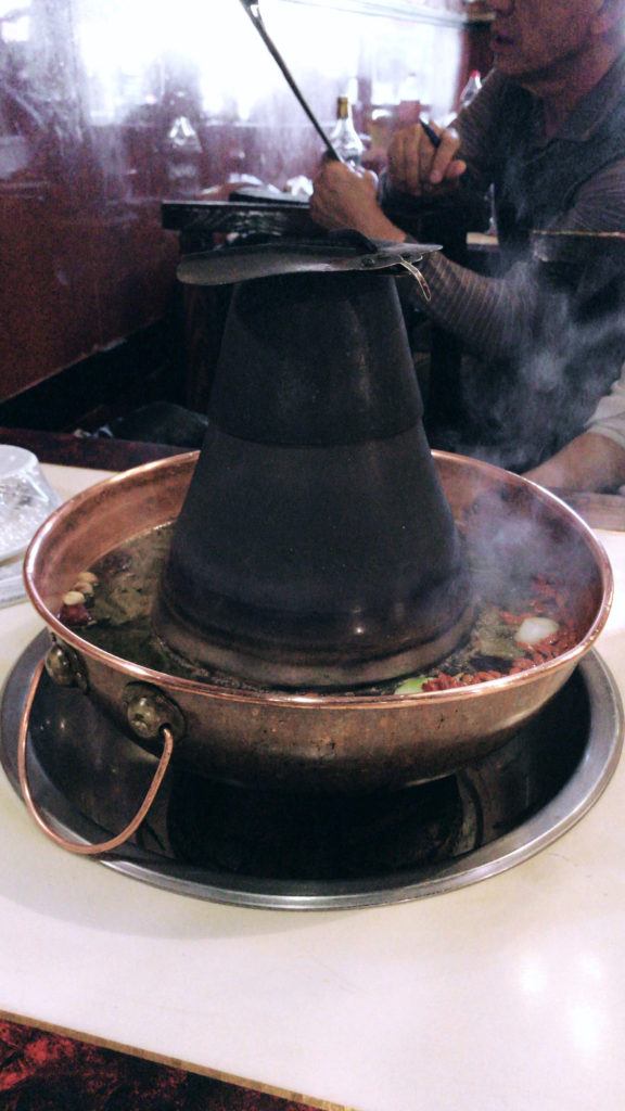 After walking North, Henghsan Road meets Wulumqui Middle Road. We finally were walking by more authentic Chinese restaurants. We walked by this small hole in the wall that spoke to us. There were no expats inside and no one spoke English. We peered inside and tried to guess what type of food it was. It almost looked like fondue? A man waved us inside and the rest was history. We ended up eating at Yanji Old Beijing Hot Pot for lunch and it was an experience I definitely did not think I would check off my Shanghai bucket list! Read on to know more about my experience at Yanji Old Beijing Hot Pot.