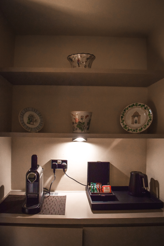 ...It was so comfortable, Patrick didn't waste one second jumping into the bed. We were so high up, we couldn't hear any of the music from the Christmas festivities and wedding happening below. It was like it's own private sound proof floor. There were many thoughtful extras included in the room, including a complimentary Nespresso machine and tea station, bathrobes and slippers, use of the energize fitness & leisure space, and a deep sleep pillow spray by ThisWorks. I had never seen a deep sleep pillow spray before! What a unique addition.