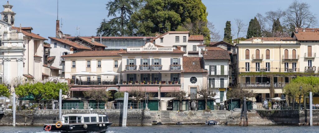 Another place where one can enjoy breakfast, lunch and dinner is at the newly restored Hotel & Ristorante Delfino on Isola Bella. Located on Vittorio Emanuele, this lakeside restaurant goes back to the 17th century. Il Delfino is the oldest hotel on Lago Maggiore. Today, the lakeside hotel and restaurant reopened and can seat up to 150 people. More on the hotel section below.