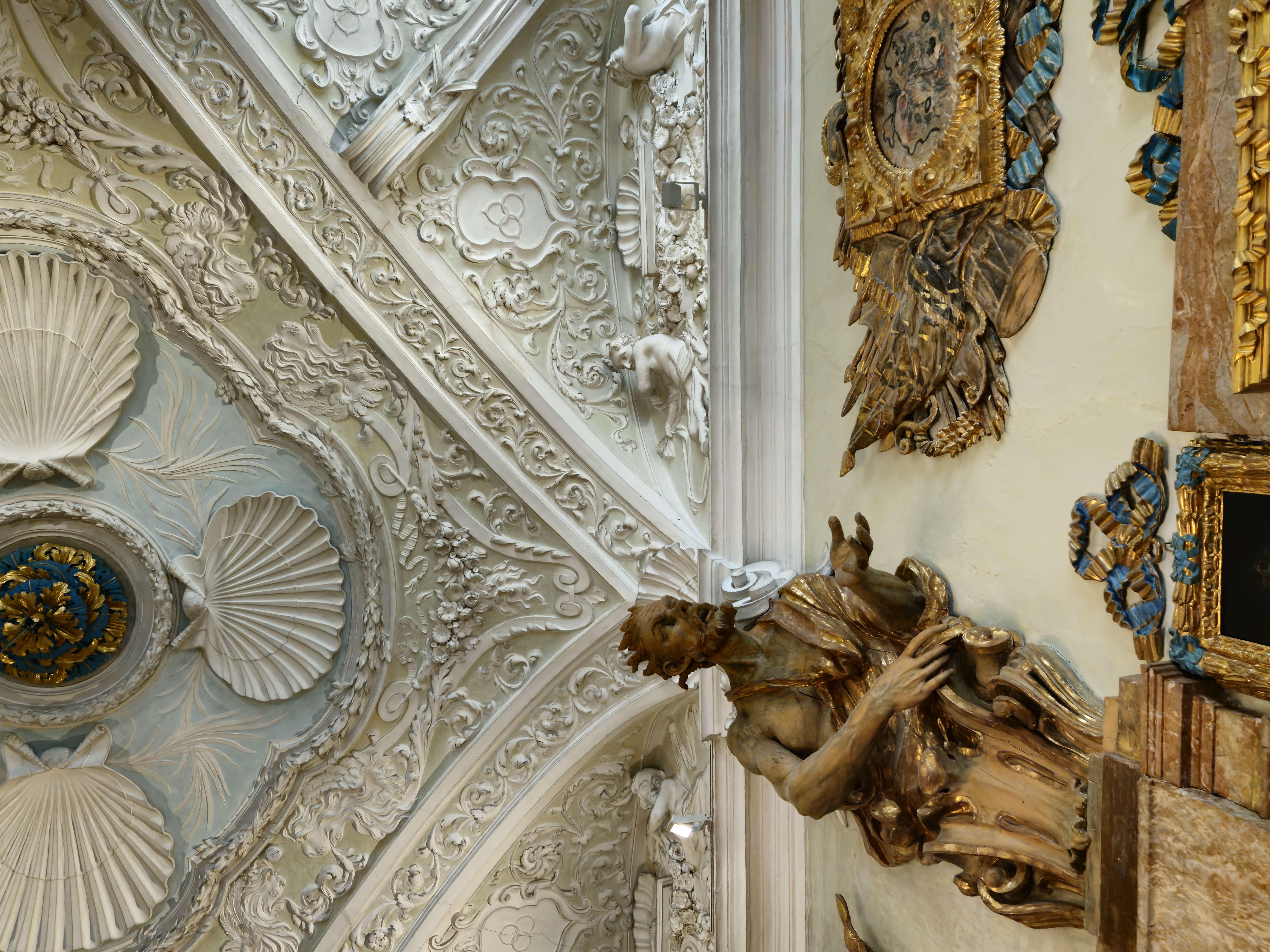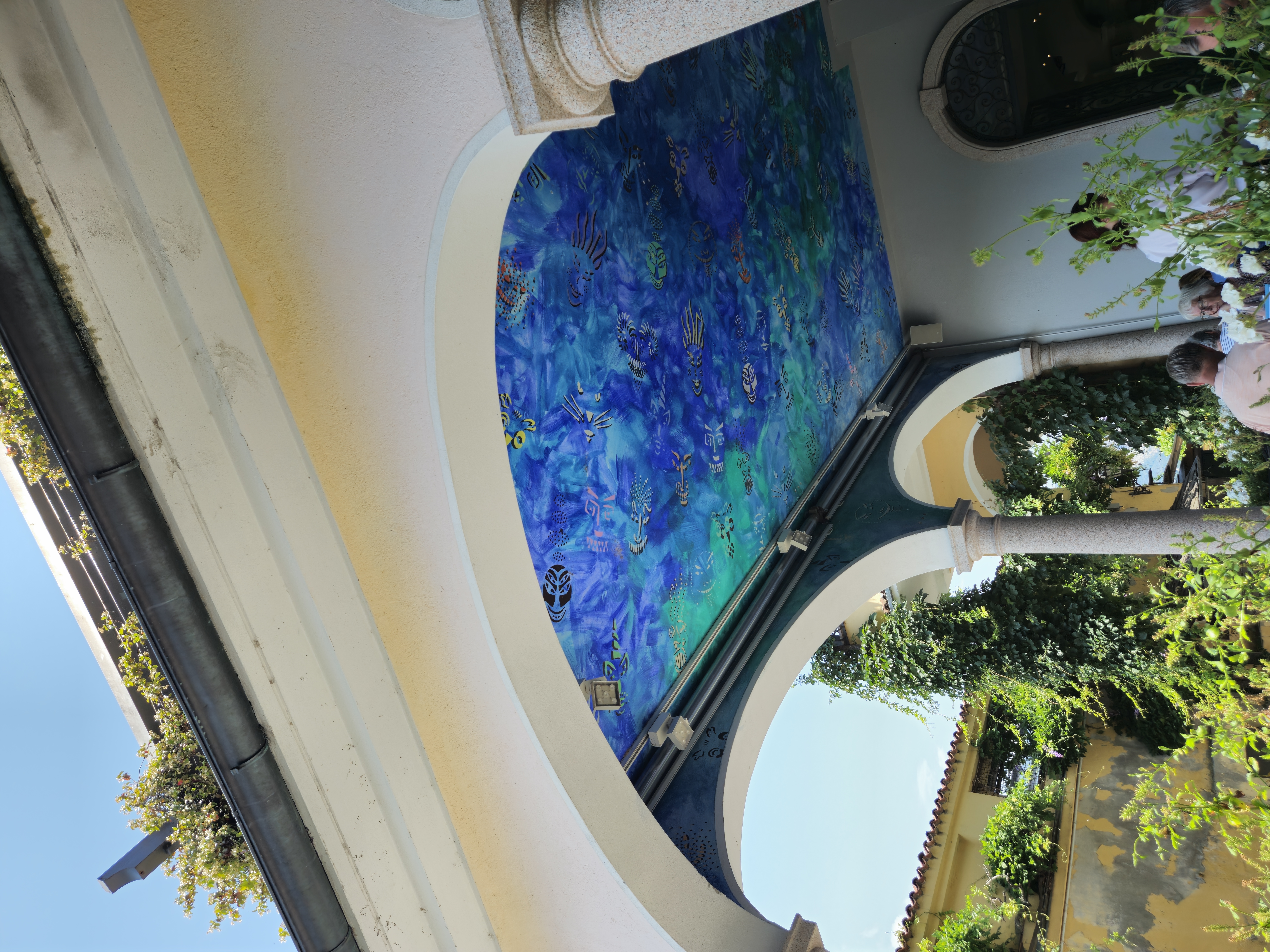 The coolest part, in my opinion, is the 6 underground natural grottos decorated with dark and light colored pebbles and shells in designs reflecting nautical themes. It's said that workers spent 10 years collecting stones by the lake at Intra and Pallanza and bringing them to Isola Bella to create the grottoes. You'll even see stones and shells from far away places like Japan.
