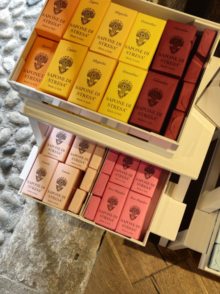 As you step off the boat, you are immediately engulfed in stalls along the lake selling local items or Made in Italy products. You'll find products being sold with the official Borromean Islands crest - three linked circles with a point on each represent the ancient partnerships and unions made between the house of Borromeo, Visconti e Sforza who fought to protect the Lago Maggiore territory and governed the land. And now that I told you about the three circle crest, you will see them everywhere, I promise. Keep your eyes peeled.