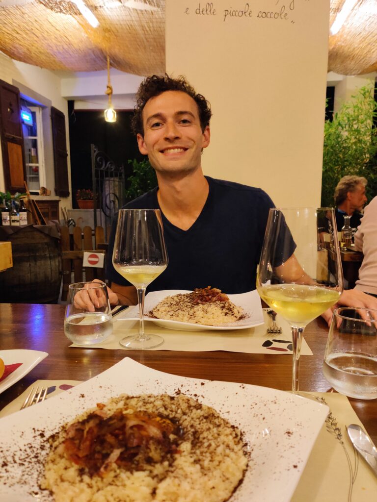 Pat proposed to me at Lago delle Streghe in Alpe Veglia, and that same evening we drove straight to Trattoria Risottino to celebrate. It felt fitting—after all, Piedmont is Italy’s rice country, and risotto here isn’t just a dish, it’s practically a birthright. But Risottino takes it to a whole new level with what they call risottini di fantasia—fantasy risottos you’d never dream up yourself. We ordered the carbonara version, topped with a raw egg and sprinkled with coffee beans. Weird? Absolutely. Delicious? Even more so. Dessert was a tiramisù that I still think about to this day, creamy and just boozy enough to feel a little mischievous. For me, this trattoria will always be tied to that milestone night, but honestly—it deserves a spot on anyone’s list, ring or no ring. Reservations are a must.