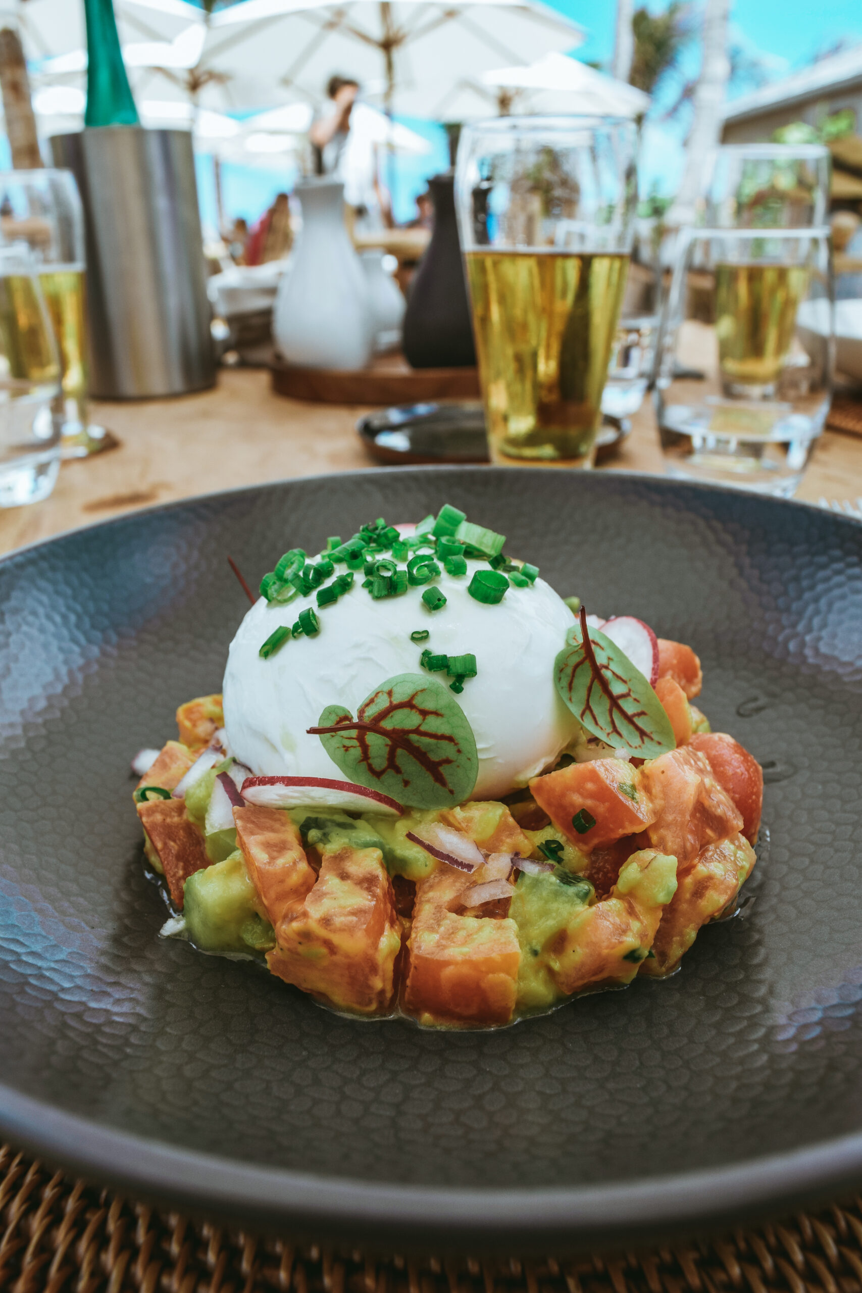 As the President took a sip of his beer, the waitress seamlessly slipped in and brought us our lunch. I had ordered the tomato salad with mozzarella di bufala. Like all things in St. Barth, the food is always presented in the most beautiful and Instagram-worthy of ways. Even just my simple mozzarella—the white mozzarella was a perfect contrast to the popping colors of the bed of vegetables lying underneath. It was a light and flavorful salad, perfect for the hot mid-day St. Barth temperature. The mozzarella was so fresh it melted in my mouth and the vegetables so flavorful I couldn’t put my finger on what made it so.
