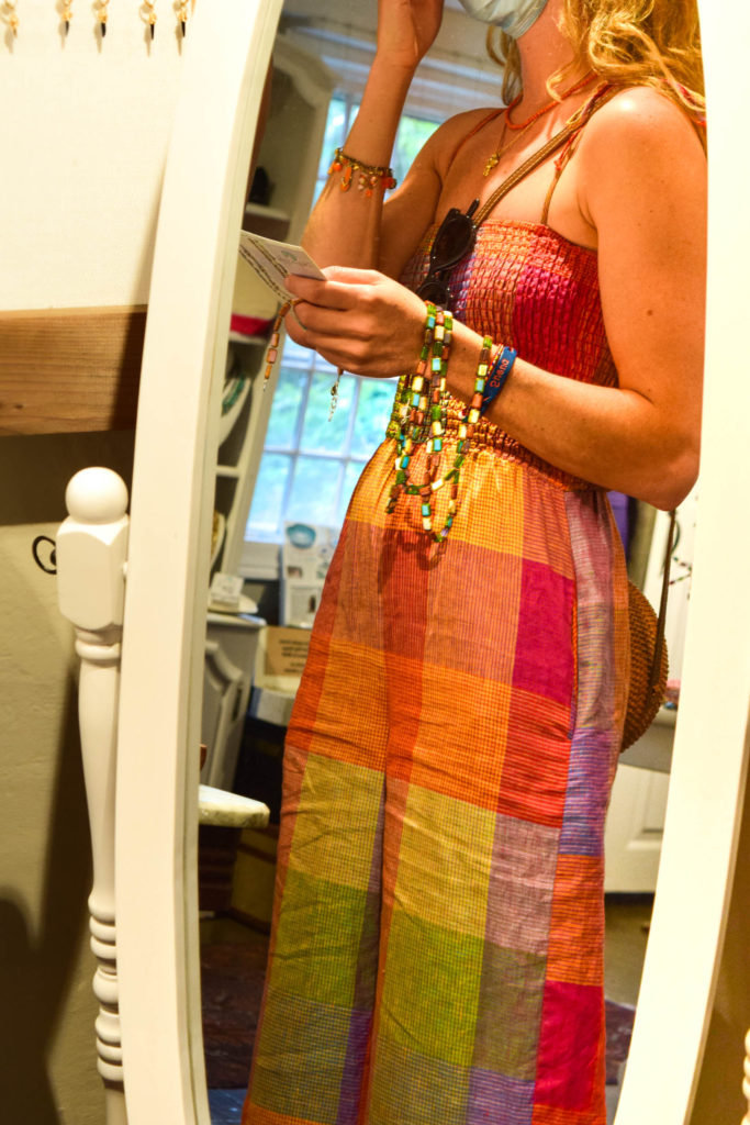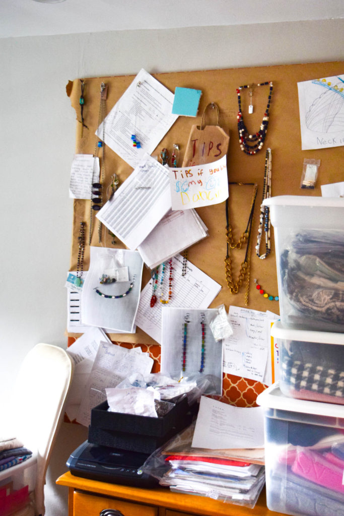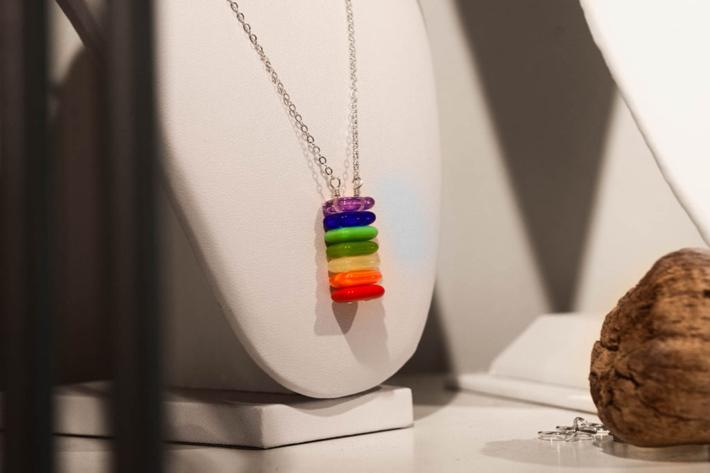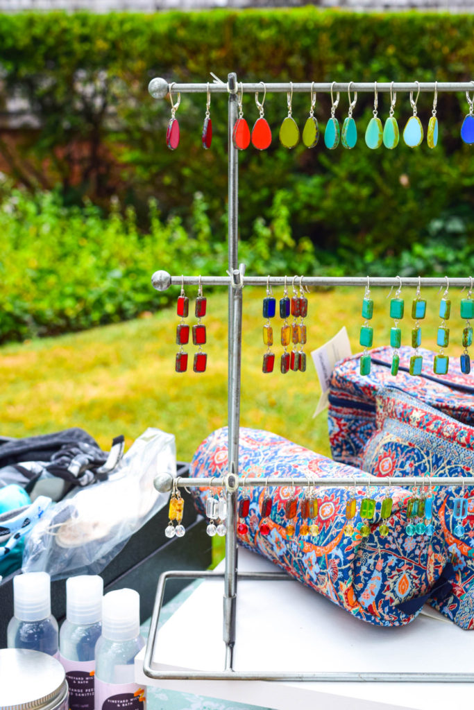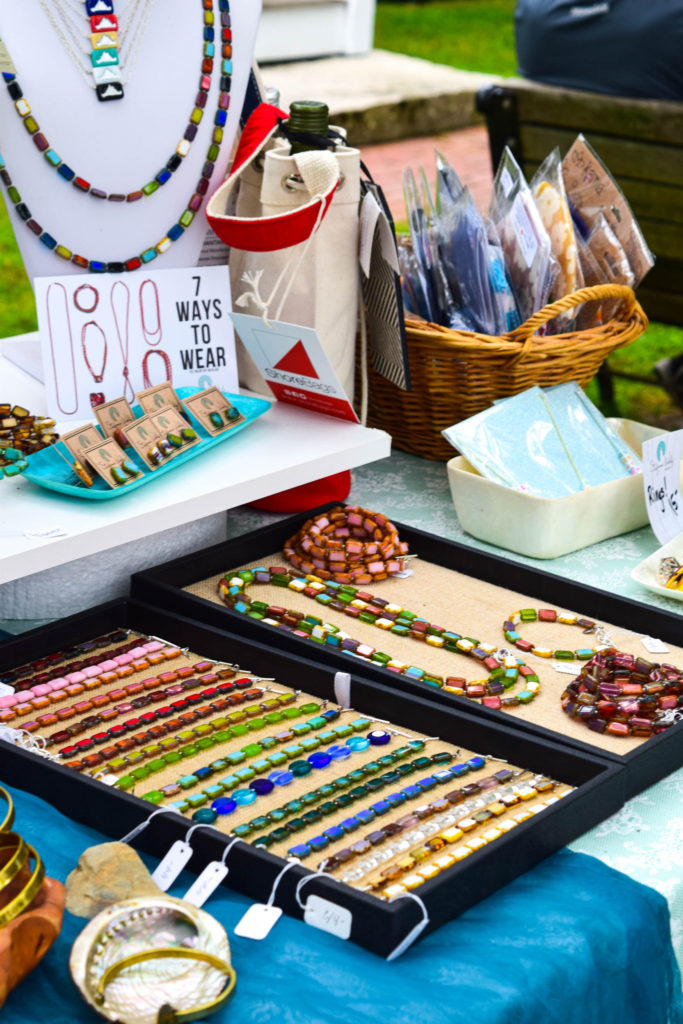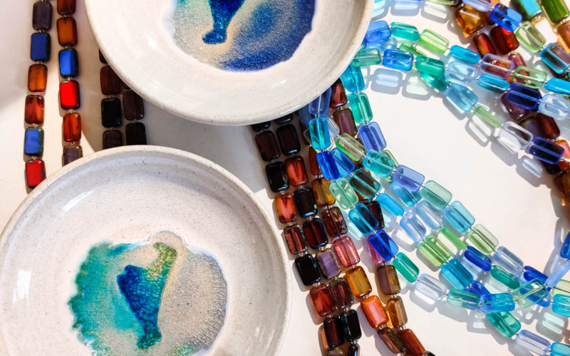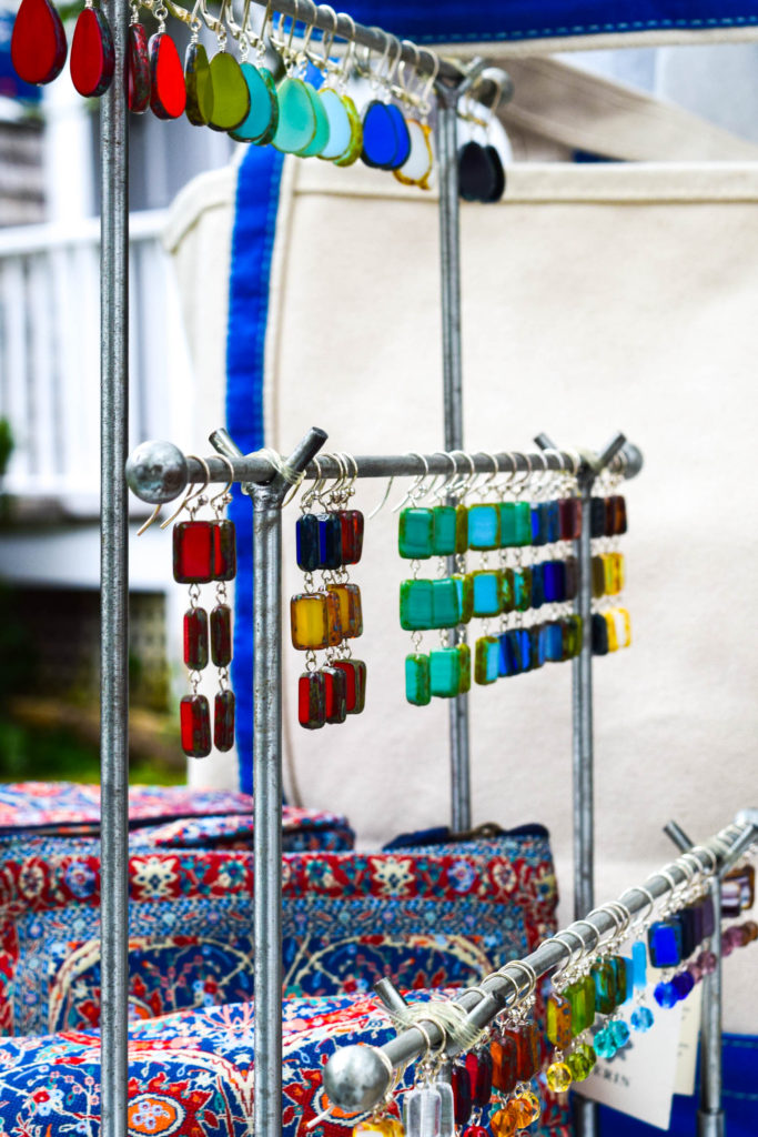 Her jewelry is made possible thanks to her large collection of beads and the inspiration she finds designing jewelry among the many pieces in her store and studio. When she touches and feels the product, each piece of glass is unique and has its own personality, it tells her what it wants to become. Her store features a tall, white apothecary table containing thousands of glass beads. Not only does she sell her jewelry, but she teaches jewelry-making classes as well and does private DIY create and sip classes (sign me up!), where she enjoys sharing the knowledge she has gained over the many years she has been making jewelry.