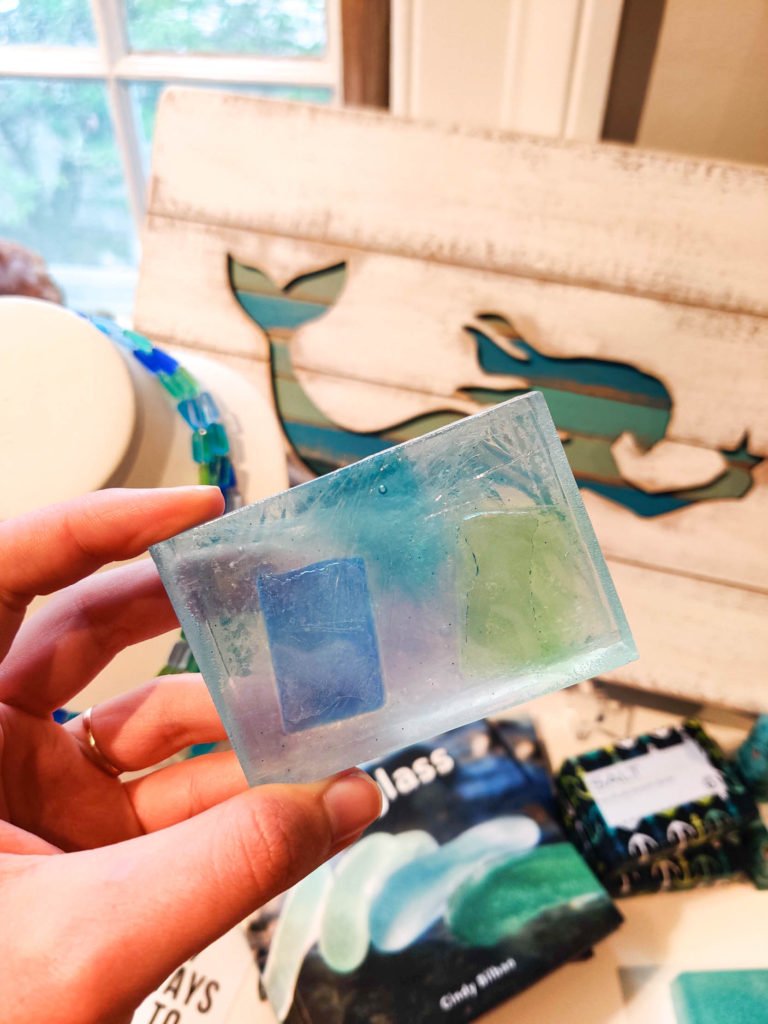 In addition to showcasing some of her staple and unique glass jewelry pieces, such as the wampum shell inspired necklace native to the Martha's Vineyard region, she went on to spotlight some of her favorite local products she's incorporated into the store. There was an excitement in her voice that was hard to forget as she walked by different local products in her store, picked them up, and proceeded to tell us all about why they are so special: