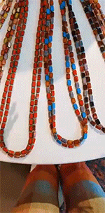 I wanted to try everything. Stefanie would lift out entire trays, letting me touch the beads, try them, and admire the results along with Patrick as he watched, bemused. I would occasionally stretch out my arm in front of him, jiggling my wrists under the flood lights. Colors glistened and flashed from the jewelry. "They're super nice and shiny," Pat approved.