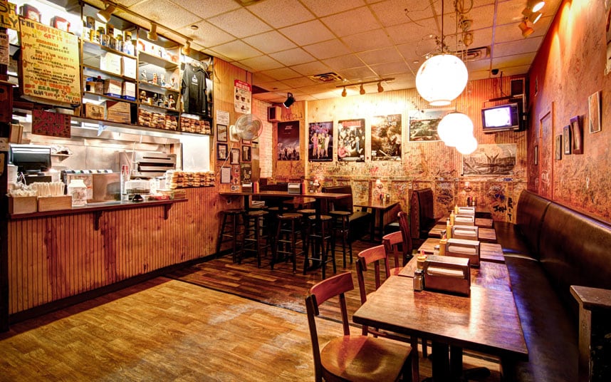 Ever heard of a speakeasy burger joint? Now you have. This secret, cash-only hamburger counter is hidden inside the Parker Meridien Hotel on 56th Street. In contrast to the upscale hotel, the joint has a very down-to-earth hole in the wall vibe making it an awesome low-key, yet unexpectedly amazing meal. Think Williamsburg vibes with graffiti, writing, stickers, and cool vintage posters on the wall.