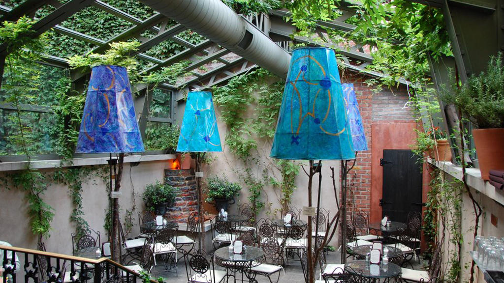 This 200 year old garden has 4 fireplaces lit up in the winter and is covered in greenery and plants in the summer. I scouted their menu and probably see myself trying this place for lunch. They serve light paninis, smoked duck breast, salad, and thin pizza, as well as drinks, coffees, and pastries during the day.