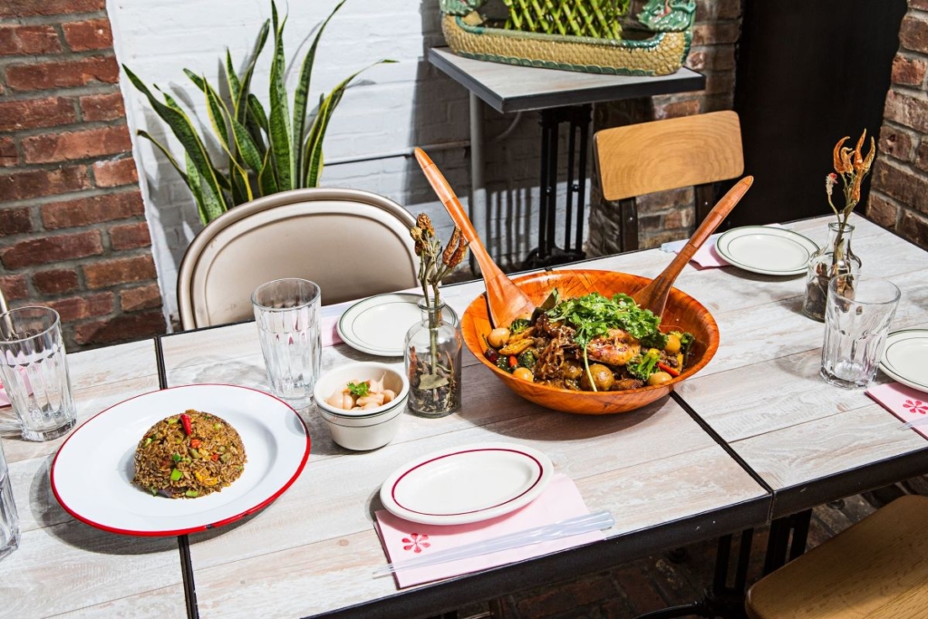 What really attracted me to Wayla, aside from the Bangkok-style food such as egg roll meatballs, was its outdoor garden. Playful rugs, plants, pillows, and chairs make for a casual yet fun dinner, brunch, or drink on a summer day.