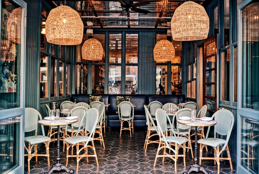 Adjacent to Hotel on Rivington is Cafe Medi, a Mediterranean cafe with French Riviera vibes and a design that captures anyone's attention when walking by. The entrance opens up to the sidewalk with open aired seating and woven basket lamps hanging from the ceiling, but the beauty doesn't stop there. Proceed inside and you'll be taken aback by a beautiful Mediterranean mural that's accentuated by light breaking through the ceiling from a skylight in this trendy brunch spot. You can either order à la carte or enjoy the $39 brunch which includes 2 entrees and 2 hours of unlimited Mimosas and Bellinis (sign me up!).