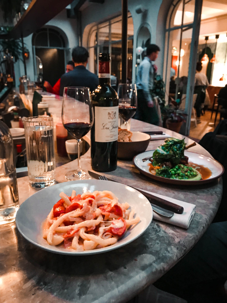 Don’t cast aside hotels when deciding where to eat and drink in Paris. Hotels are now focusing on exceptional culinary and cocktail experiences, turning the experience of staying at hotels into destinations themselves. The Grands Boulevards Hotel Restaurant and Rooftop Bar has a unique scene and is one of the best hotels for foodies in Paris. The Roman chef Chef Giovanni Passerini is known for his infamous restaurant Rino, that sent shock waves in the Parisian foodie community when it came to Italian food. By far, one of the best meals we had in Paris and we were utterly surprised by the fact that it was located right under our bedroom!