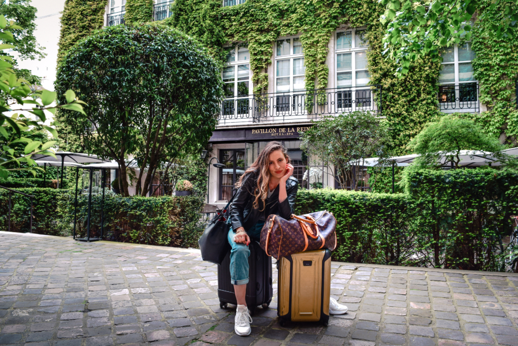White stone arches lead through hotels each with their private courtyard surrounding the infamous Place des Vosges. If you want to make the romantic and historic Place des Vosges, neighboring the famous Marais district, your home base while in Paris, you have a beautiful, intimate, and historic option. We had the opportunity to stay at one of the few intimate hotels surrounding Place des Vosges—a small luxury hotel of the world hotel, Pavillon de la Reine. Pavillon de la Reine means ‘Queen’s Pavilion.’ The building and its design is an ode to Queen Anne of Austria who once stayed in one of the wings. A stay in this historic mansion home is like immersing yourself into the life of the high nobility in France of the 17th century.