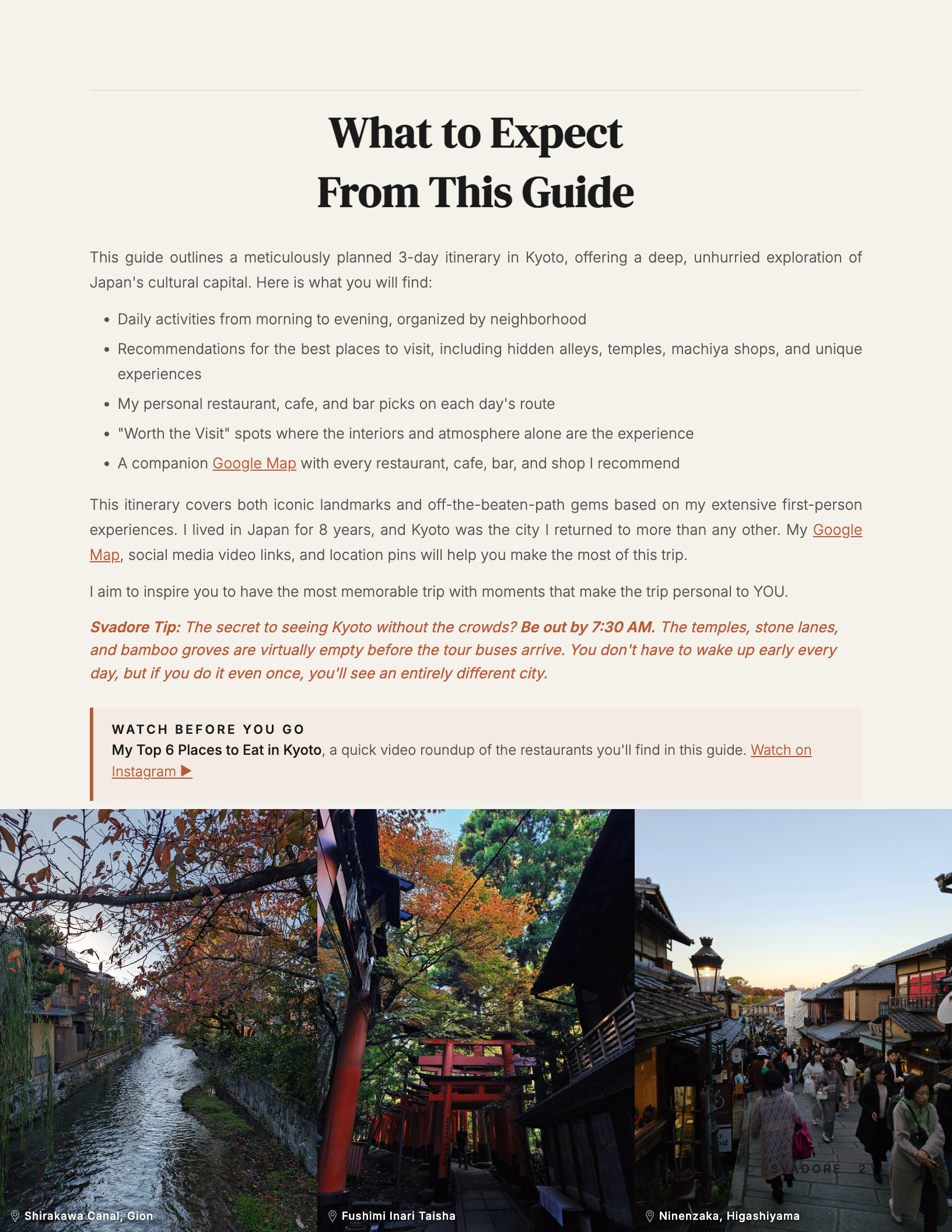 50+ “Svadore Approved” Pins: A companion Google Map with every restaurant, cafe, bar, and hidden temple pinned and ready to navigate.