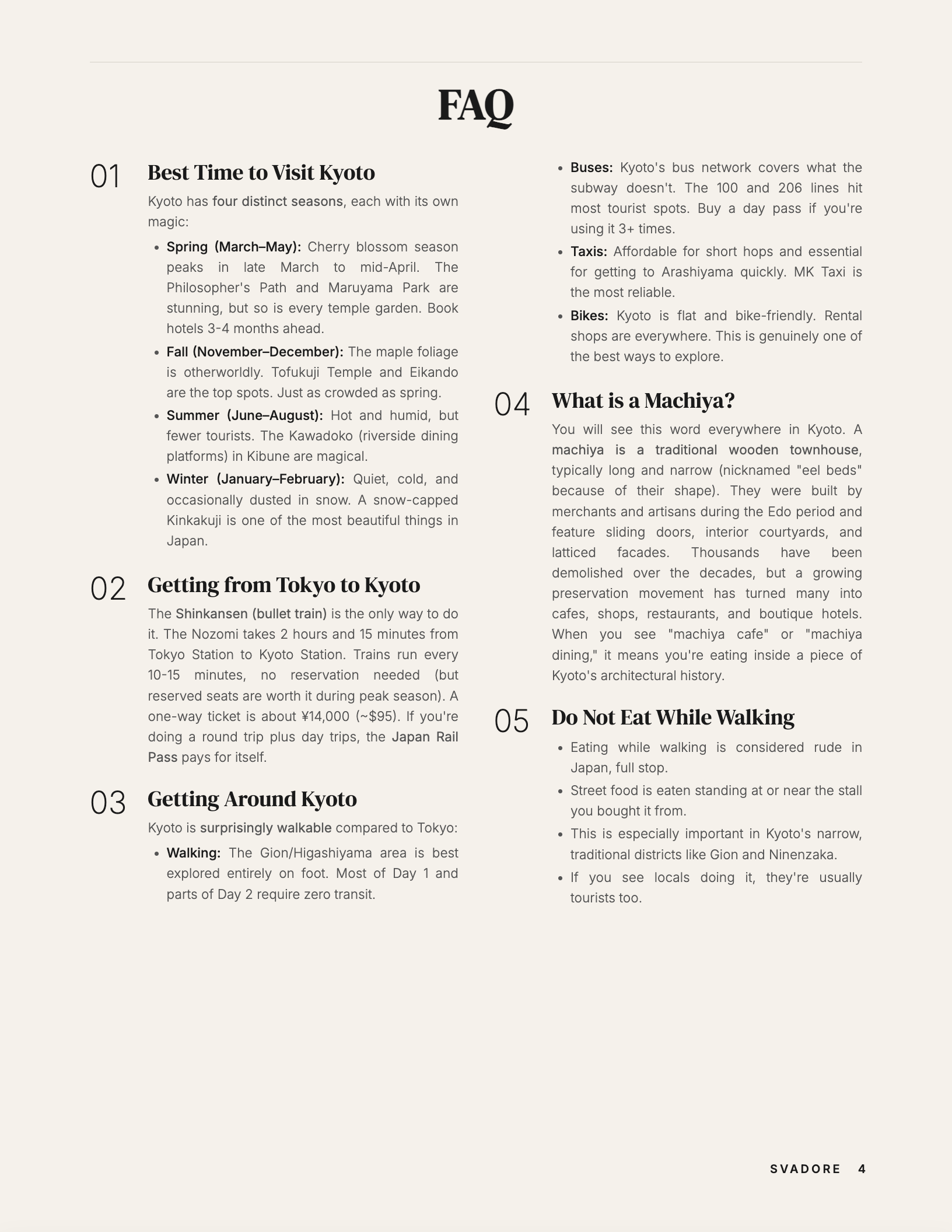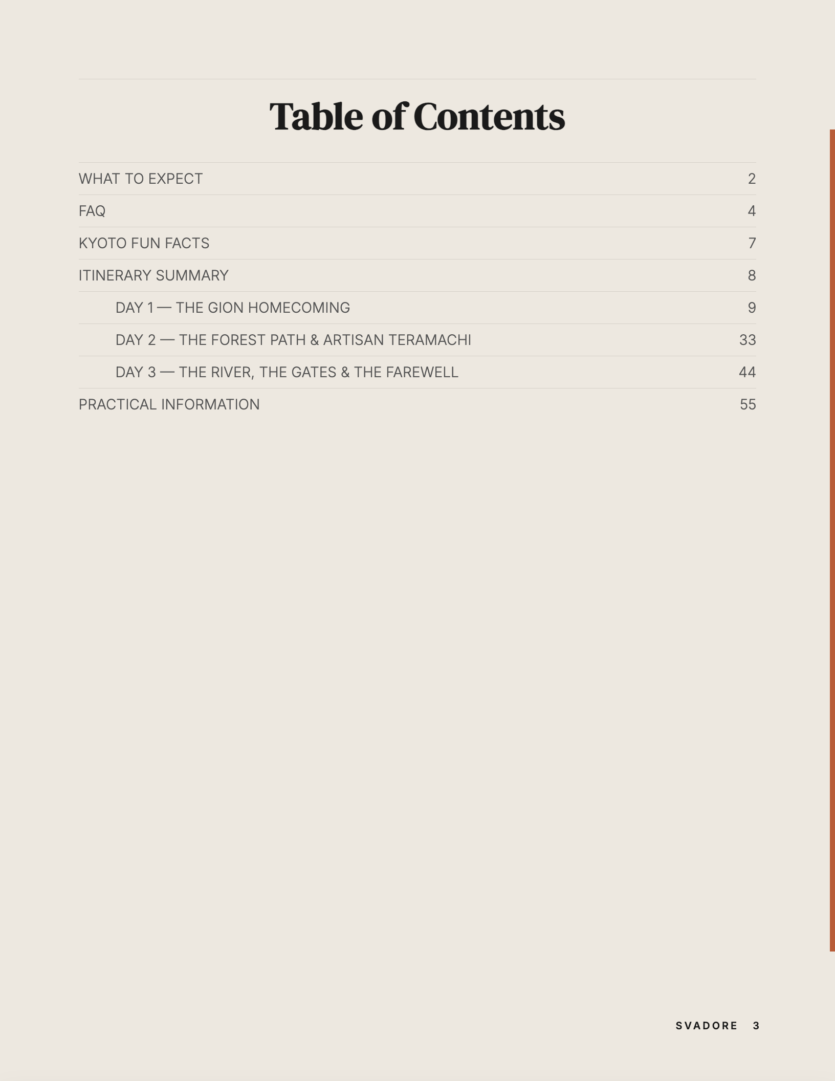 This is a Professional Intervention. As a travel planner, my clients pay for my time, my lived experience in Kyoto, and my ability to navigate the nuances of Japan’s cultural heart so they don’t have to. Kyoto is a city of layers, without a guide, it’s easy to spend three days just skimming the surface. People hire me to build trips like this, but not everyone has the budget for a custom itinerary. So I built the next best thing: the exact 3-day Kyoto blueprint I’d plan for you, with the same research, the same 8-seat counters, and the same insider knowledge I provide to my private clients, in a 59-page guide you can take with you.