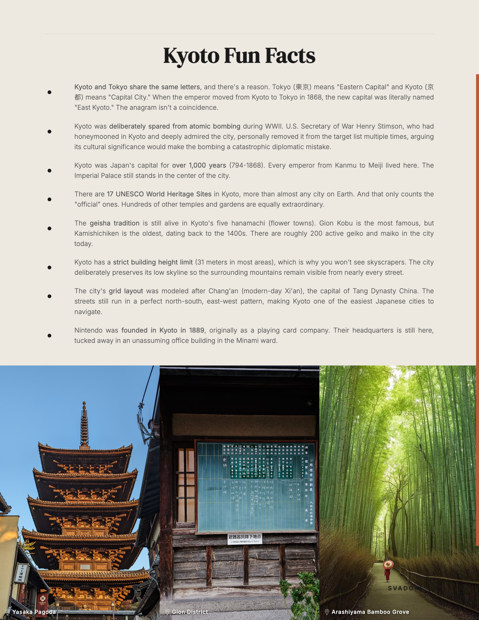 Fun Facts & Hidden Stories: The kind of details about Kyoto’s history and traditions that you’ll actually remember and repeat at dinner.