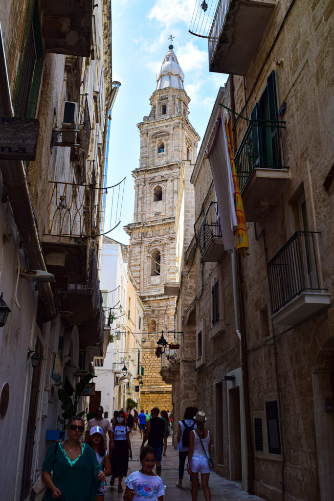 After seeing all that Polignano a Mare had to offer, we drove 20 minutes South to the seaside town of Monopoli. Monopoli is a perfect day trip from Polignano a Mare and isn't typically on everyone's Puglia itinerary. The town is small and doesn't have too much to see, but it's a nice break from the otherwise busy Polignano a Mare. The passeggiata or walk is the number 1 entertainment activity here. Wind your way through the Porto Vecchio, walk down to the tip to see Castello di Carlo V, look up at the Palazzo Martinelli, and visit Piazza Giuseppe Garibaldi. The port area has palazzos facing the sea that reminded me of Venice. The palazzos wrap around the sea lined with restaurants and stores till your reach the Castello at the tip of Monopoli. The inside is full of small alleys, cafes and the beautiful Duomo. The shadows of the alley were a nice respite from the Apulian heat and the Duomo led the way, lit up by sunlight in the middle of the town.