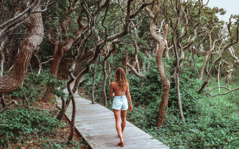 Enter and you’ll immediately start noticing the rich flora and trees surrounding you. Sunken Forest is called “Sunken” because it is formed behind a line of secondary dunes, which makes it look “sunken” from the tops of the dunes. This illusion makes it look like the forest is below sea level, when in reality it is not.