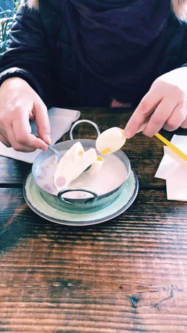 Now the description may turn you off, but imagine a tapioca-like pudding with sweet coconut milk. This warm dessert is a sensory delight both to the taste and to the feel with it's mix of chewy and crunchy food. It's made with taro rice balls, a tropical plant that tastes almost like tapioca but has the consistency of gnocchi, and you can find a pouched egg in the middle of the dessert. It's incredibly sweet and unexpected and was by far my favorite dessert at Khao Nom.