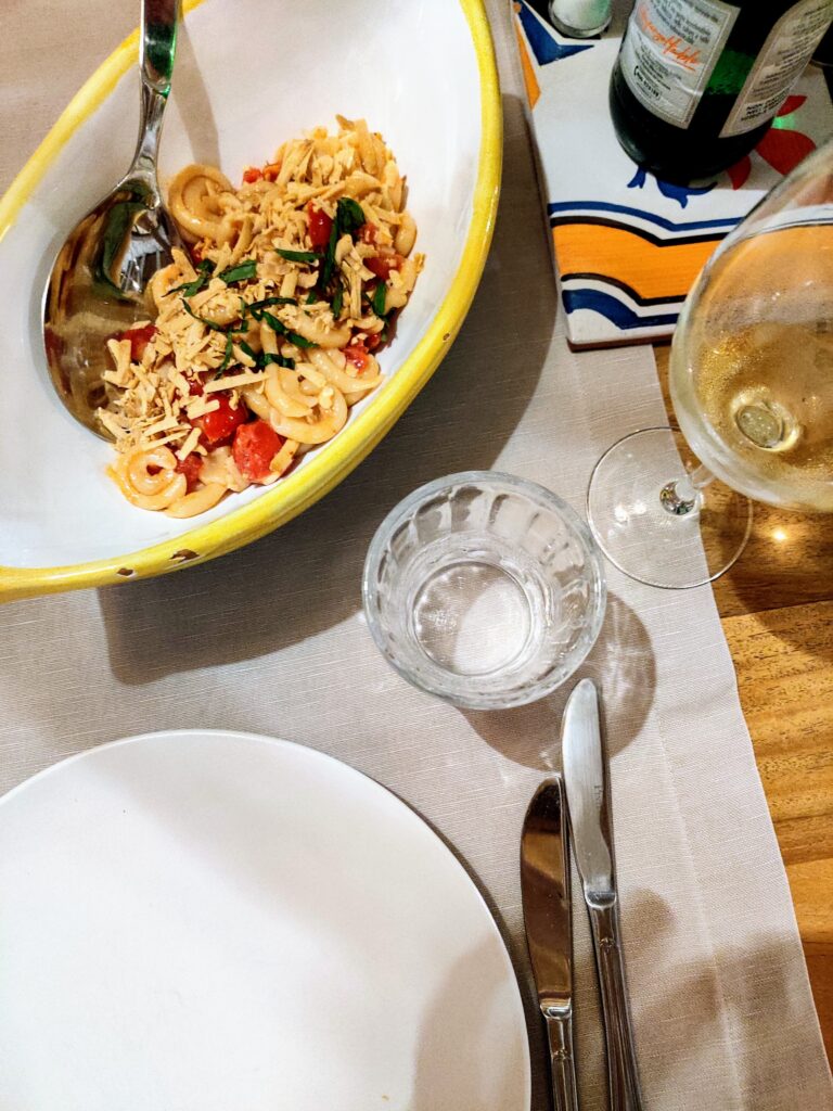 I'm not one to eat dinner at hotel properties very often. But I've been known to do so when it's the right hotel that showcases a unique experience and local food. Our boutique hotel in Malfa was one of those exceptions. We enjoyed their imperial table where they serve food family-style with other guests of the property. Non-guests can get on a waitlist day of, but odds of them being able to join during peak periods are slim. They change the menu daily to focus on fresh seasonal ingredients.