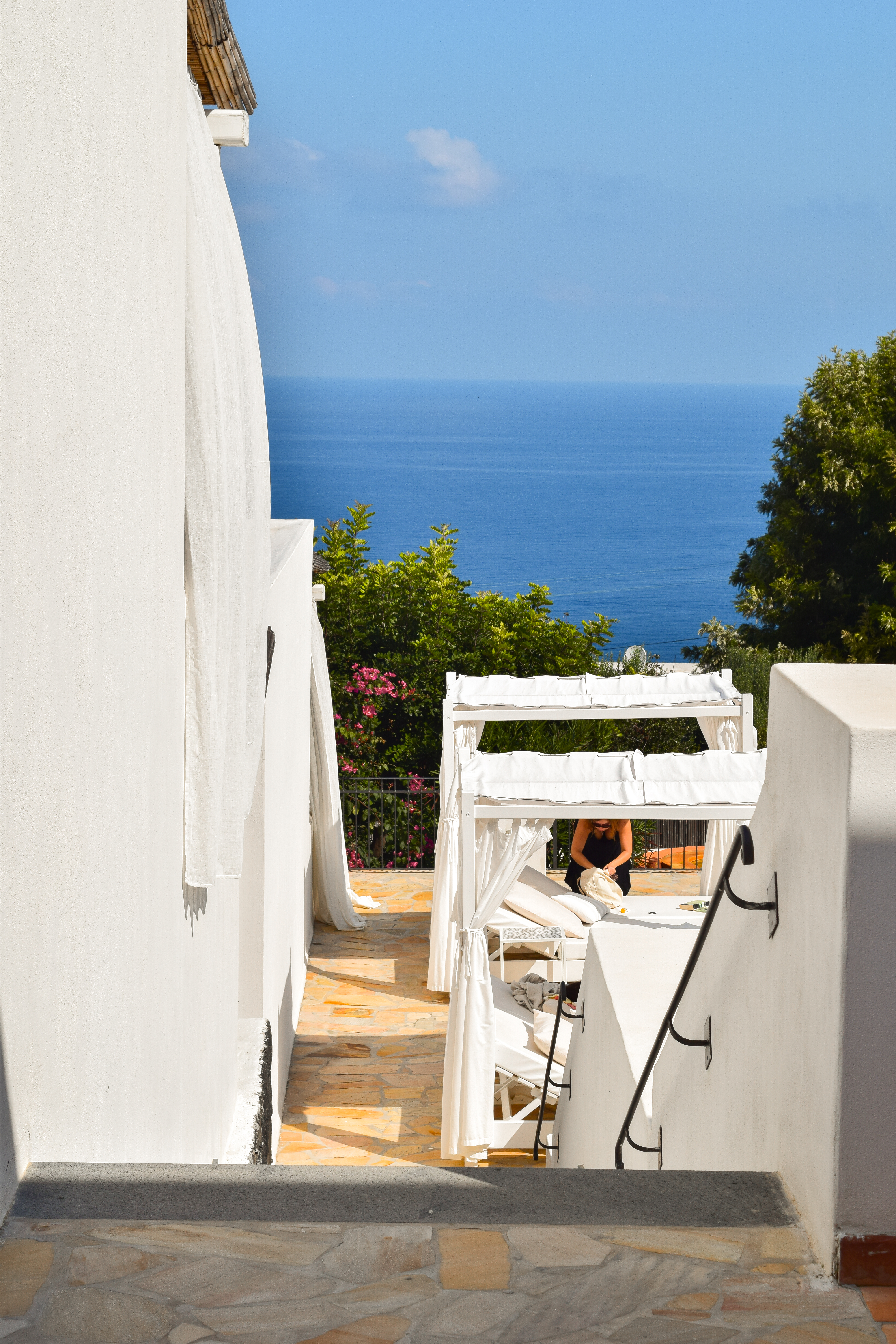 While our room was delightful, the private pool is where we spent a good chunk of our time. When I think of a relaxing itinerary, seclusion by the pool with a view of the Tyrrhenian Sea sounds ideal. What could be better than the billowy white clouds against the bright blue sky, a freshening breeze, and a just-delivered Negroni or Spritz to quench your thirst?
