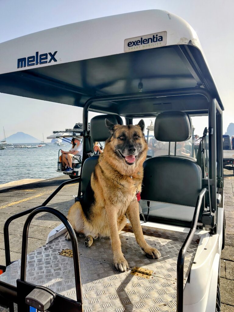 The trip from Salina to Panarea is very quick—just 30 minutes via ferry. As soon as we arrived at the miniature port of Panarea, our boutique hotel sent a golf cart to pick us up and take us to the property. After all, there are zero cars on the island so the only way to get around is on foot, via scooter or via golf cart. Some of the golf carts even had what Pat and I called "working dogs" on the back!
