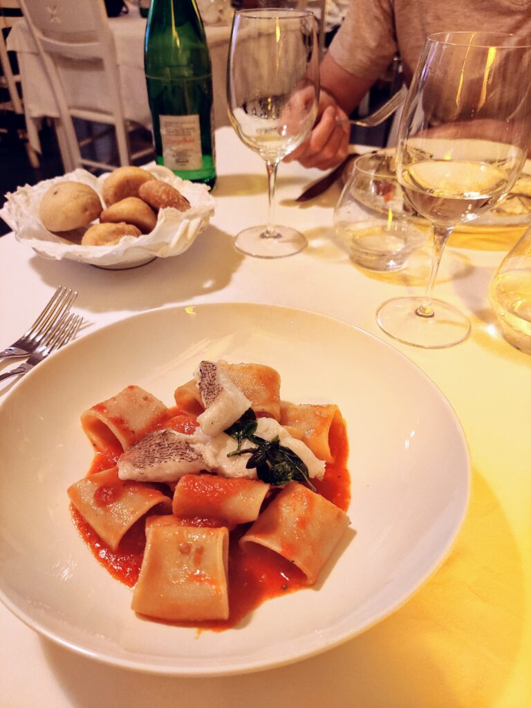 We had dinner at Cusiritati our first night in Panarea, drawn in by two things: the sweeping views of the islands (including the moody, occasionally erupting Stromboli volcano in the distance) and their signature pasta made with scorpionfish—a local delicacy and a bit of a daredevil dish. Scorpionfish, known to lurk in Panarea’s waters, are venomous little beasts with spines that can do real damage if not handled properly. But cooked the right way (minus the toxic organs and roe), they’re totally safe to eat. Or so we thought. I’m not saying the scorpionfish definitely had it out for us, but let’s just say Pat and I both woke up with some…gastrointestinal side quests. Nothing major—we still powered through the day—but our stomachs were a little off for a solid 24 to 48 hours. Coincidence? Maybe. But the scorpionfish might’ve had the last laugh.