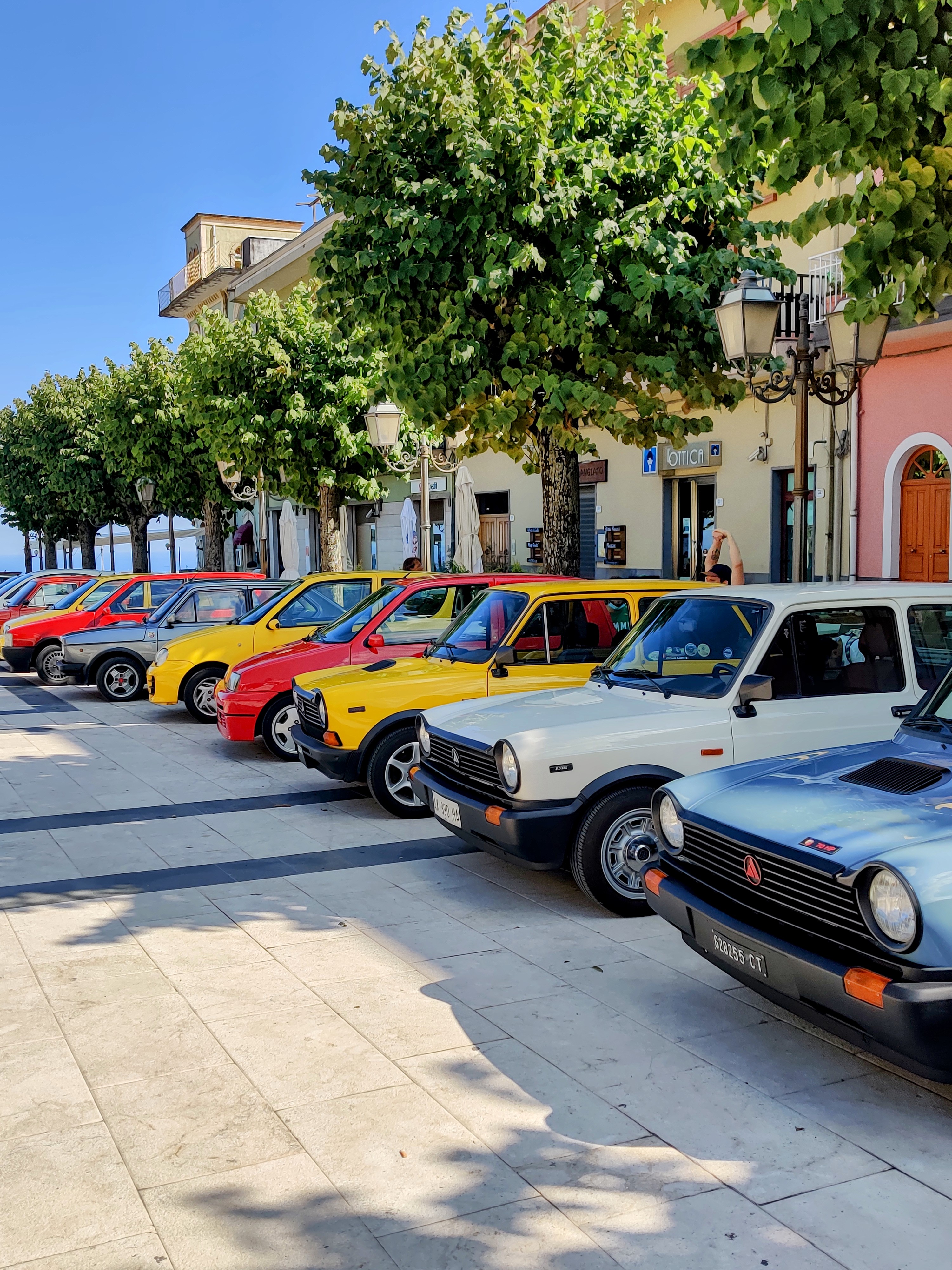 We hadn’t planned on stopping in Zafferana Etnea, but a hunger-driven detour led us to Donna Peppina, a charming pastry shop since 1924. The town’s main square feels like a scene from a film, with a grand church, sun-warmed piazza, and Mount Etna looming in the background. Tiny vintage cars line the square—old Fiats and VWs that are just part of daily life here. We came for a quick bite and ended up in a slice of old-world Sicily. Though we passed on the fried pizza, we couldn’t resist the arancini—crispy rice balls stuffed with ragù and gooey cheese. Street food, sure, but with soul.