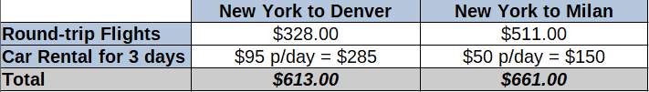 Transportation at the end of January to and in Colorado, cost me just a little bit less than transportation in Italy in March. So if this was your primary concern, let me help you eliminate it immediately. Airlines now days offer unbelievable winter deals to Italy. Same with the car rentals, sure finding an automatic car may cost you more in Italy, but the price will always be more affordable than in America.