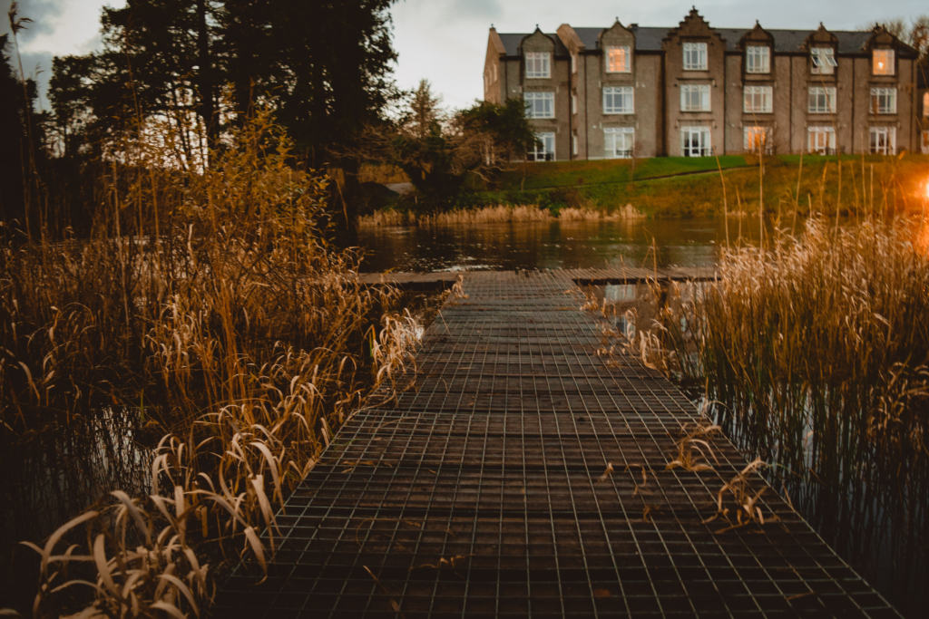 We went back to our room and geared up for our walk. Not without stopping by the den and grabbing some rain boots and jackets before heading out. The property features terraced gardens, a labyrinth garden, tennis courts, and the 10 kilometers of river and lakeside paths. It was perfect for a romantic, quiet, and reflective stroll through nature. We followed the walking map and made our way around the entire estate. We spent a good 2 hours of our morning if not more, exploring the area. In the summer, there are bikes for hire, fly-fishing for salmon on the famous Ballynahinch River, Equestrian programs, tennis courts, and more. You could spend an entire week here just drinking Teeling Whiskey and enjoying all the activities the property has to offer.