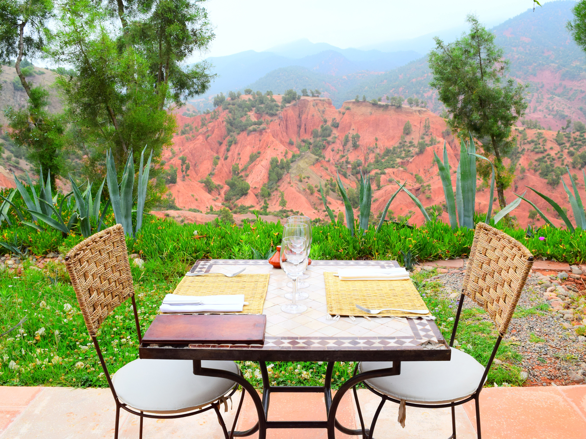 Surrounded by the red Ourika Valley mountains, neighboring Berber villages, lush landscapes and the snow-capped Atlas mountains lies Kasbah Bab Ourika. Dine beneath unpolluted night skies, bask in the breathtaking 360 degree view while reading a book, or indulge in a spa treatment. Kasbah Bab Ourika is the ultimate romantic and genuine Moroccan escape.