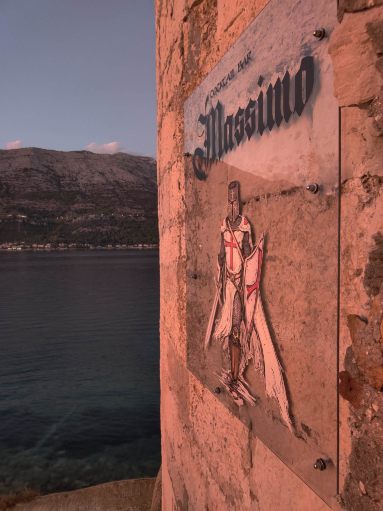 Probably the most popular locale in Korcula old town is Massimo Cocktail Bar. It's rooftop bar located on the top of the medieval reconstructed Zakerjan tower has an amazing, unblocked view during sunset. Getting up the tower is a whole journey in and of itself, so if you're scared of heights, it's not for you! To get to the top of the tower and take in that open aired medieval feel, you first need to climb up a wooden ladder in the middle of the tower. The ladder is steep and narrow and your body needs to fit through a small hole before you break through the ceiling and find yourself on the rooftop.