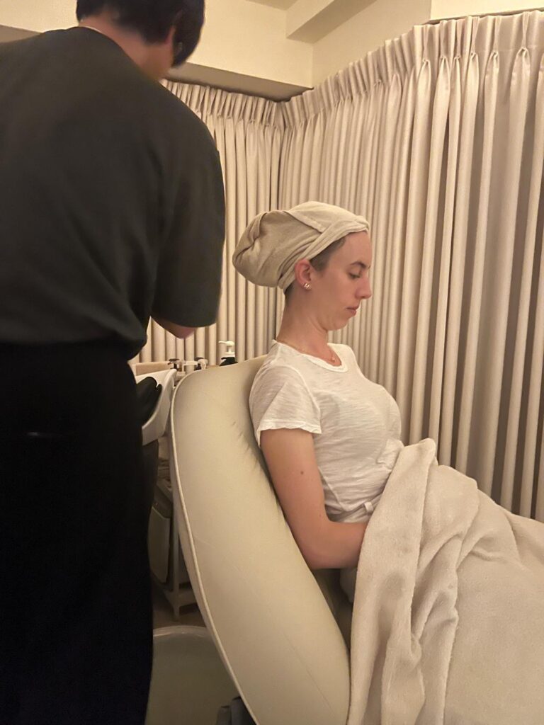 The best part, aside from the hour long head massage, was a waterfall rinse where they alternate water temperatures—hot, cold, then hot again—like a Wim Hof session for my scalp. Absolute chills. Literal goosebumps.