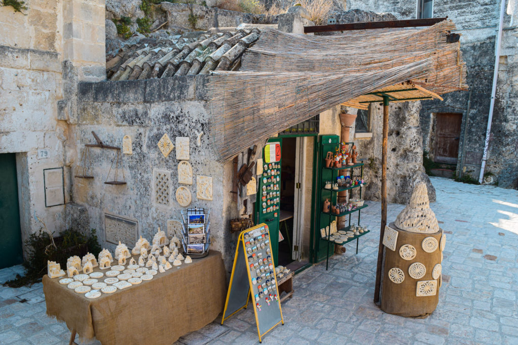 One of the most common souvenirs you'll find is made from tufo stone, souvenirs made from actual rock that the majority of Matera is made from. Examples of tufo souvenirs are pictured above. More on tufo hand-carved souvenirs in the article below.