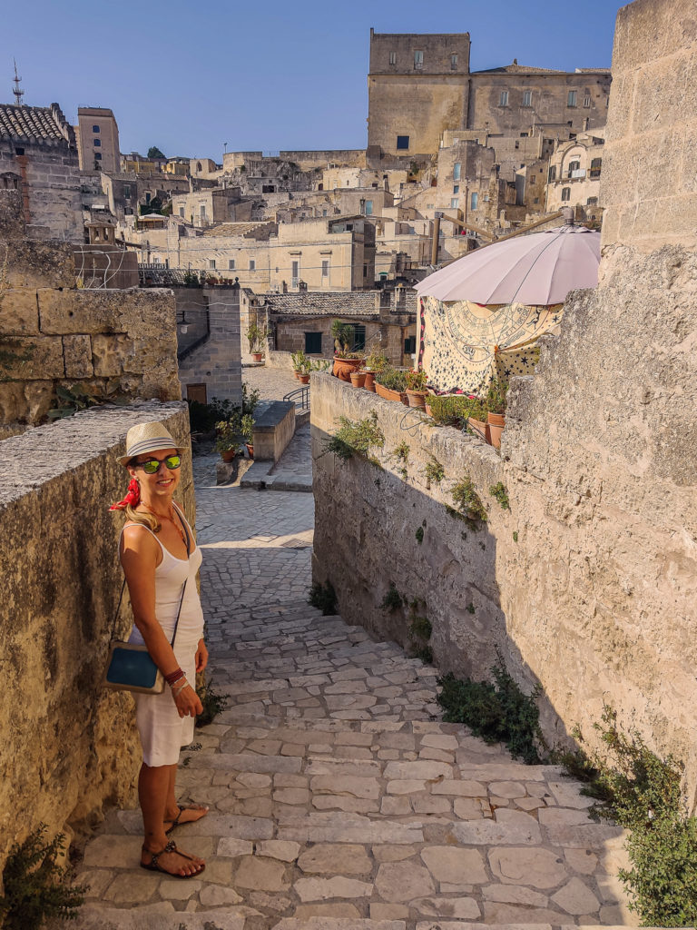 You can’t drive into the historic Sassi area so the only way to see it is on foot. Trust me when I say, you'll want to wear sneakers when walking around here. The town is made of slippery cobblestone streets and many, many stairs. Sandals and high heels are dangerous and not your go to here. If you struggle with stairs, you'll want to give yourself a few days to see the whole place con calma, calmly. There are small carriages that take you from one side of the gravina to the other, but they don't take you up.