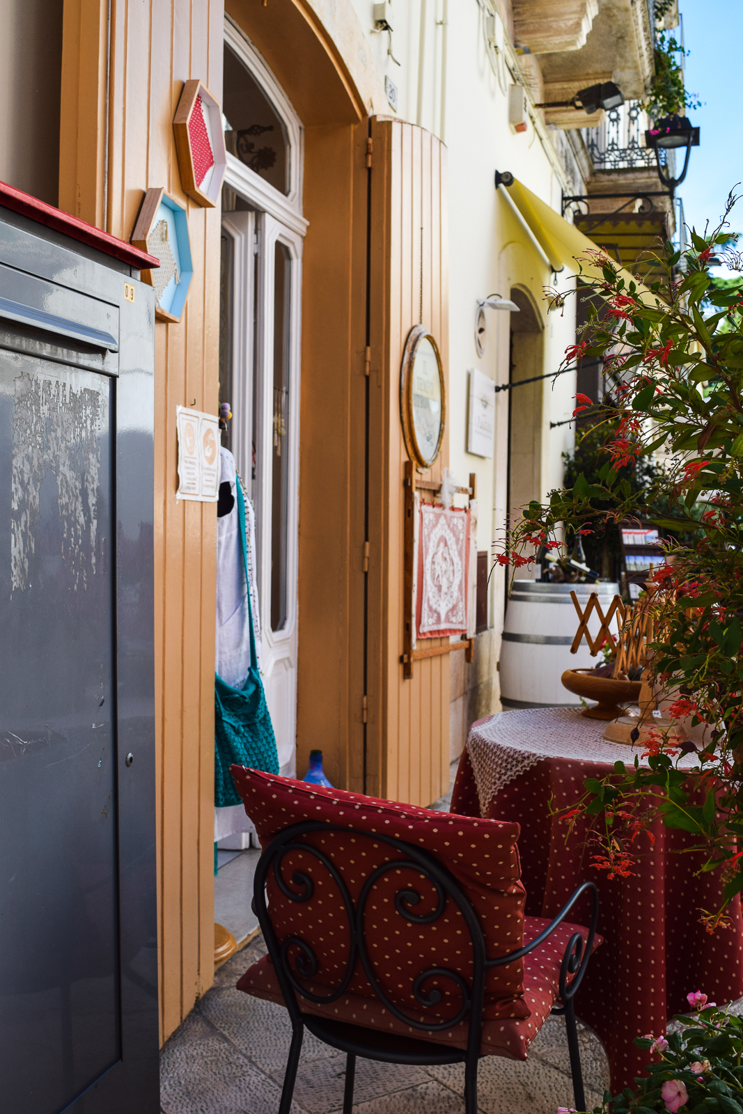 We found a small trattoria, an informal restaurant serving simple, local food. We ate sitting outside in the shade of the cool alleyway and ordered some simple salads. Our gaze was fixed on the cobbled road in front of us. The blazing sunlight turned the window boxes of brilliant red geraniums so bright the contrast was unreal.