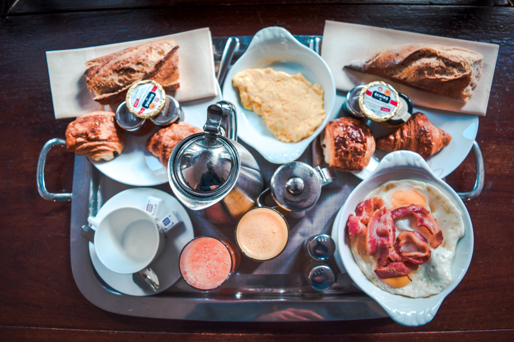 Guests can enjoy breakfast in room with the newspaper or they can have breakfast in the dining area. The room and the view from our window was so beautiful, why would we want to leave this room? The next morning, we ordered breakfast in room. Breakfast featured fresh butter and chocolate croissants and a baguette with a side of jam and marmalade. Pat had chosen freshly squeezed OJ while I ordered grapefruit juice alongside coffee. My main was scrambled eggs and Pat had 2 eggs sunny side up with bacon. The breakfast can only be described as exquisite and gourmet.