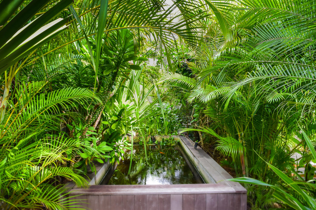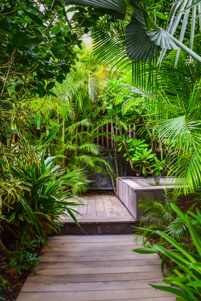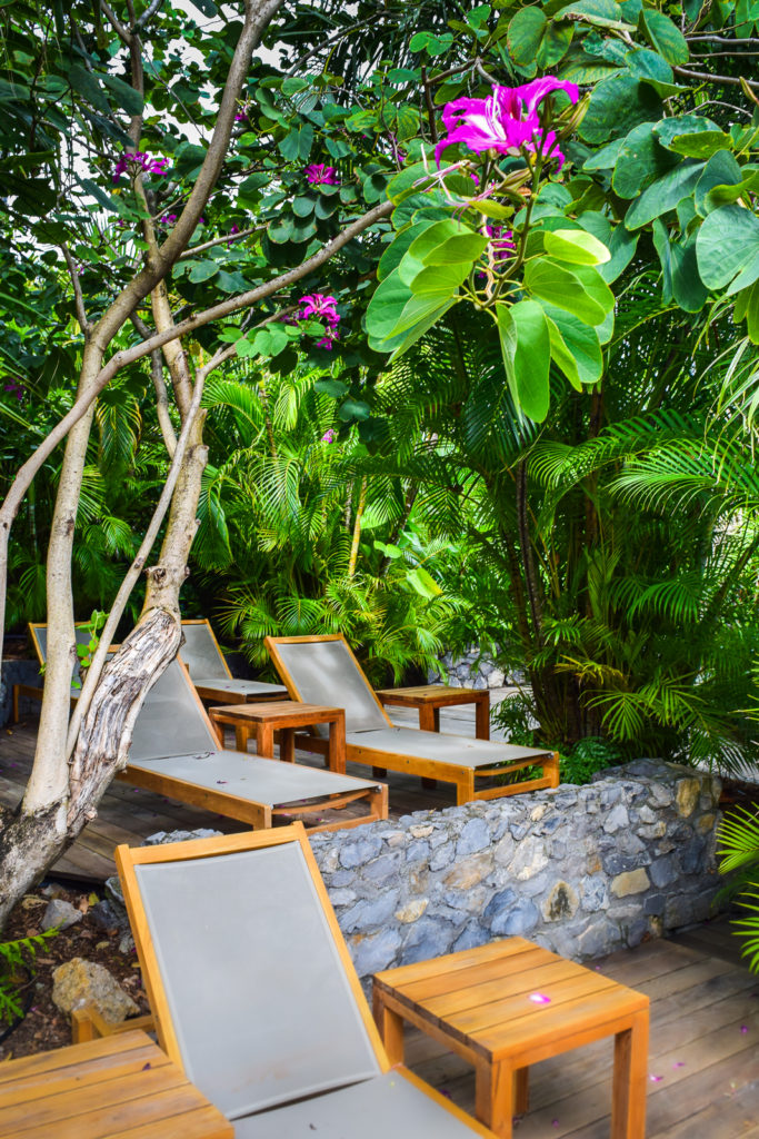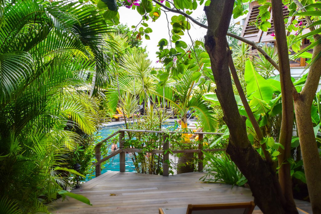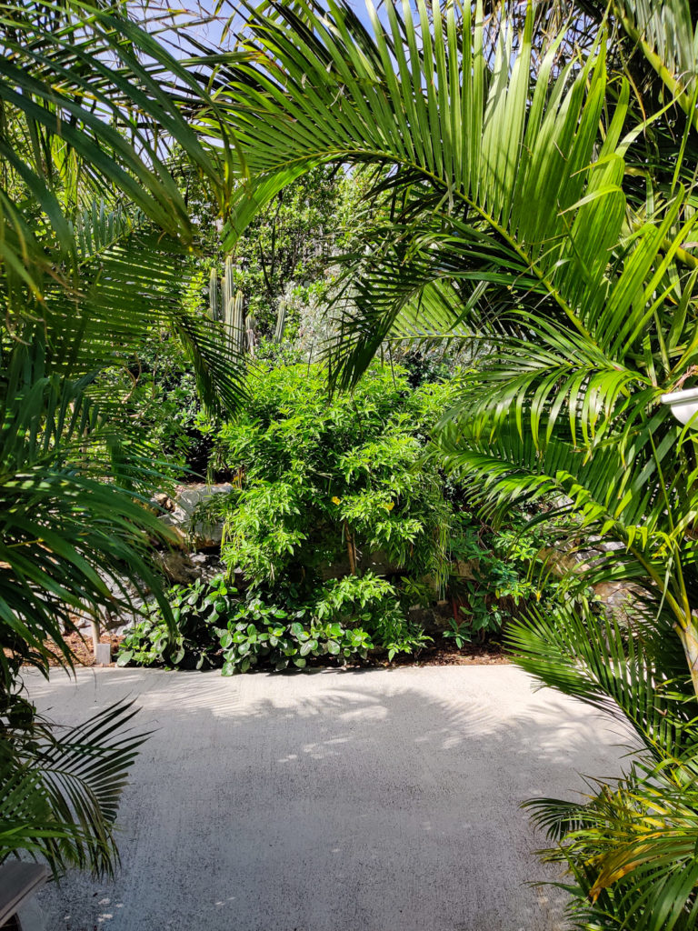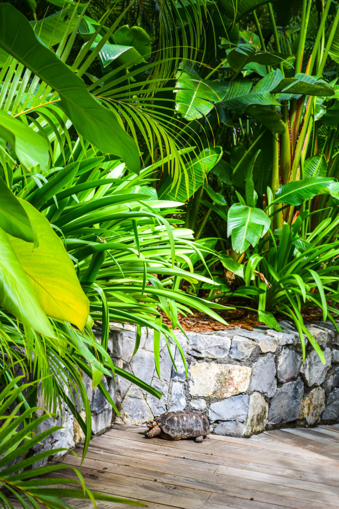 I'm green da do di da do da...that's what ran through my head when walking from our Pelican cottage all the way down to Gyp Sea. While walking around Gyp Sea St. Barth, while it all felt like one ecosystem, they somehow managed to seamlessly transport you from what felt like an elevated mountain view room, to a tropical rainforest, to a French Riviera poolside retreat. A small enclave within the property is bounteous in vegetation. Rich in various palm tree species a canopy is formed where you take a nap, meditate, read, or just get away from it all. The trickling of water into a simple wooden fountain with koi fish is the only other noise you'll hear in addition to the rustling of the palm trees. That and the occasional rustling of leaves when a small turtle passes your way.