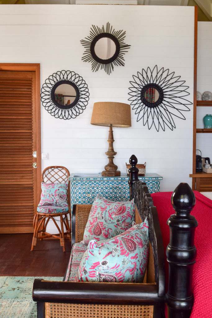 The second type of suite is the one we stayed in, with a balcony and sea view, but no jacuzzi. The third type of room is the garden cottage with no balcony pictured above. While it may not have a balcony, the design and color choices still manage to make it feel spacious and airy and bring plenty of cool air on those hot days.